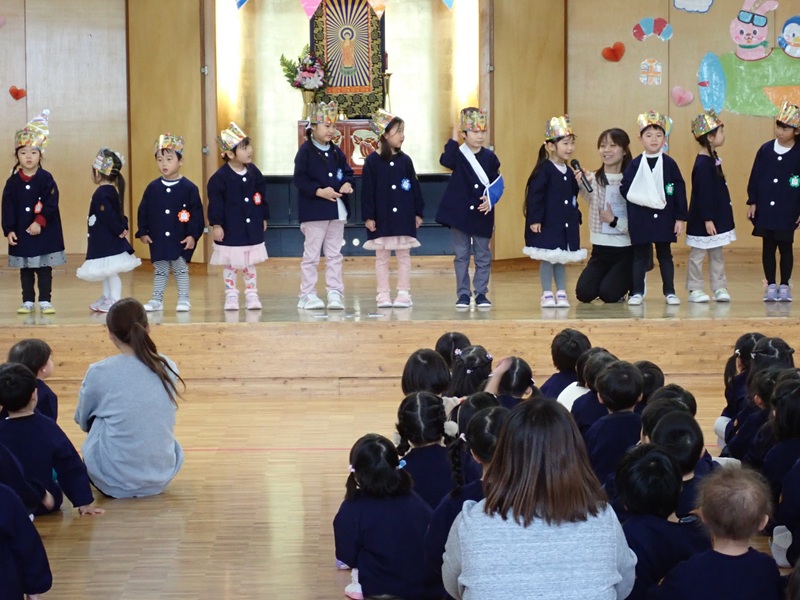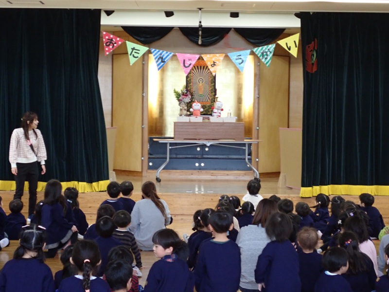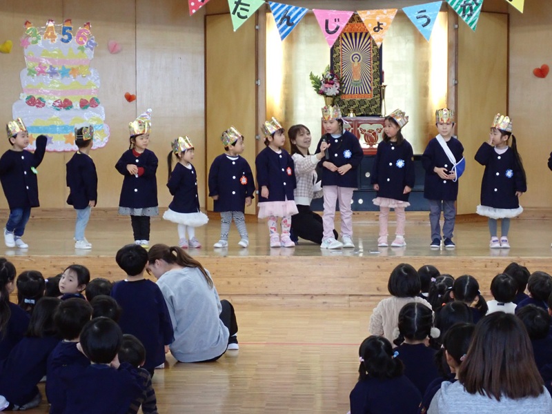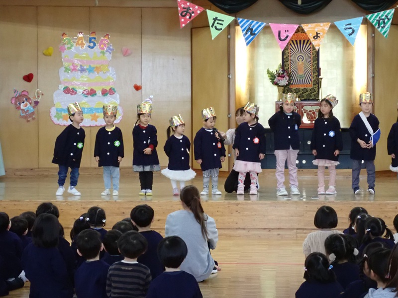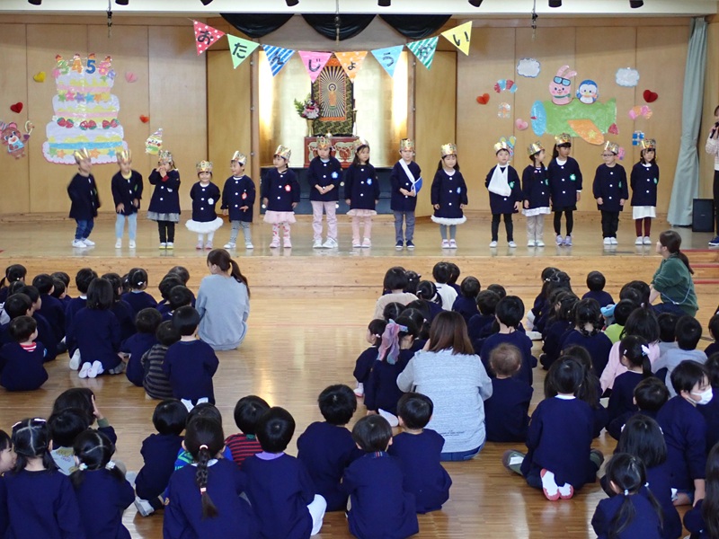 本日は、10月生まれの園児さんたちのお誕生会でした。悪天候の中、またお忙しい中にご参集いただきまして、誠にありがとうございました。