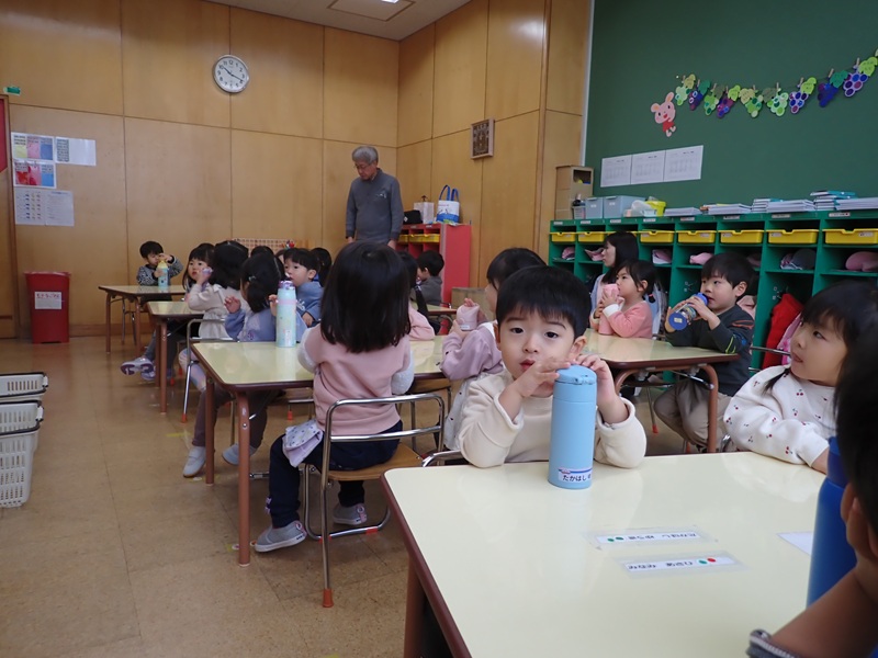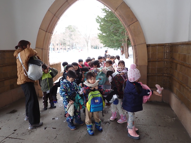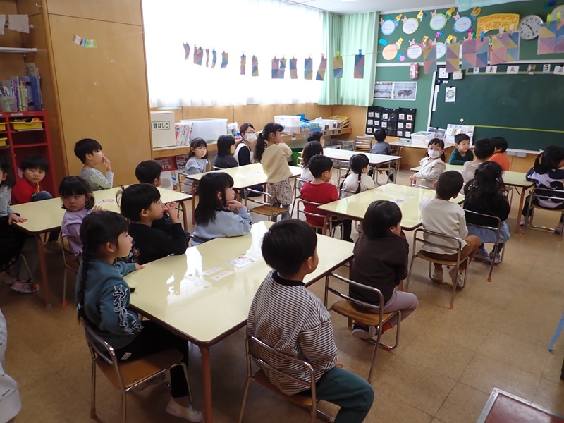 12/11(木)に、明園小学校の5年生が附属大谷幼稚園を訪問してくれて、交流会があったことを報告しておりましたが、今日は年長組さんが明園小学校を訪問させていただきました。