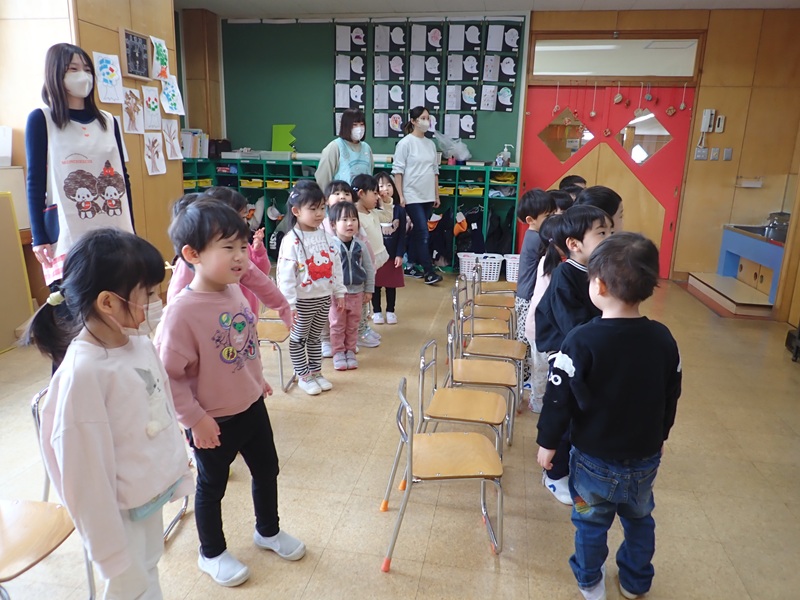 だるまさんが転んだ、手つなぎ鬼をやりました。みんな満面の笑顔で、おもいっきり楽しんでいました。