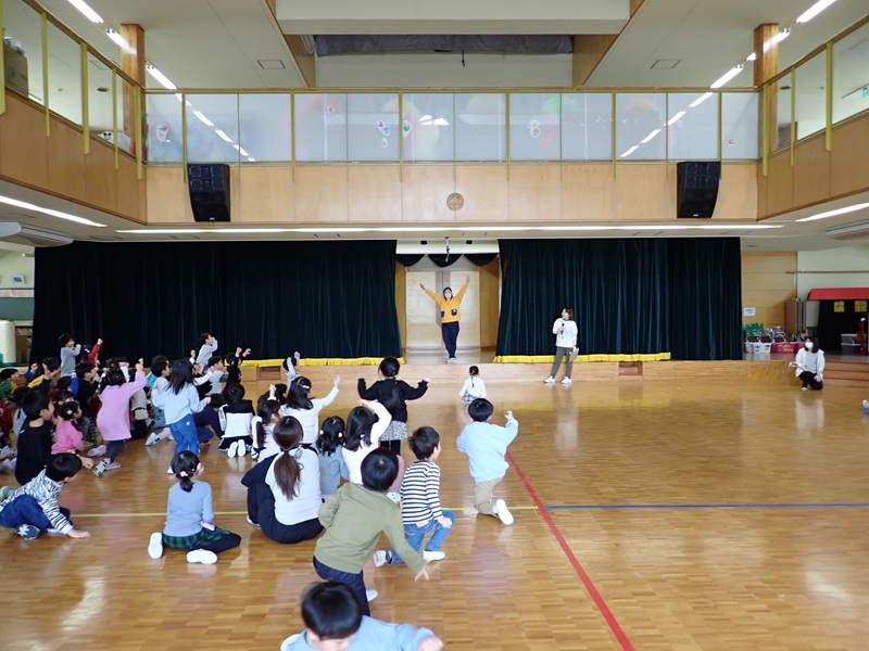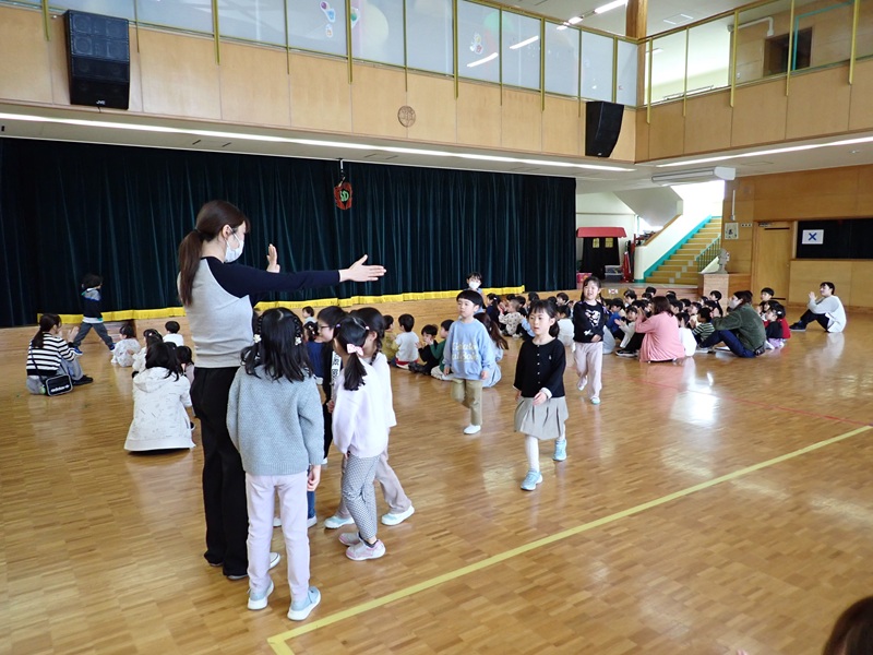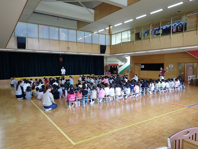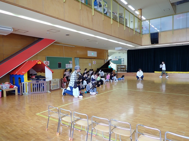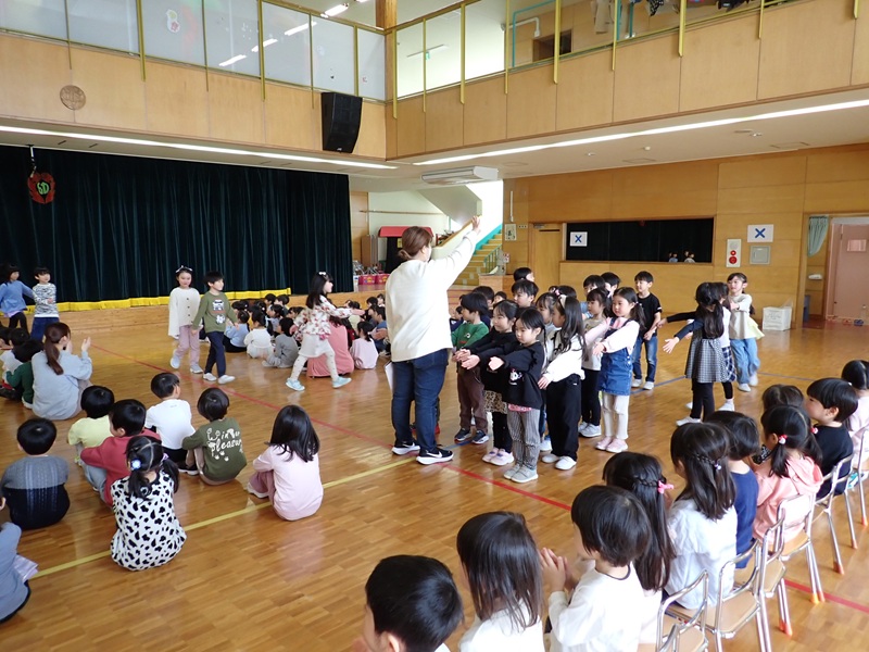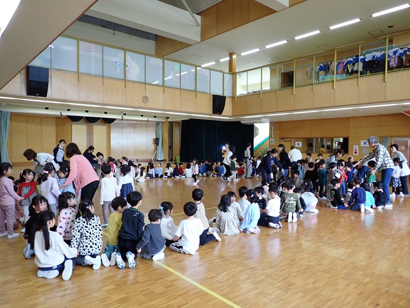先生から先生へ、教室で年長担任から園児さんたちへ