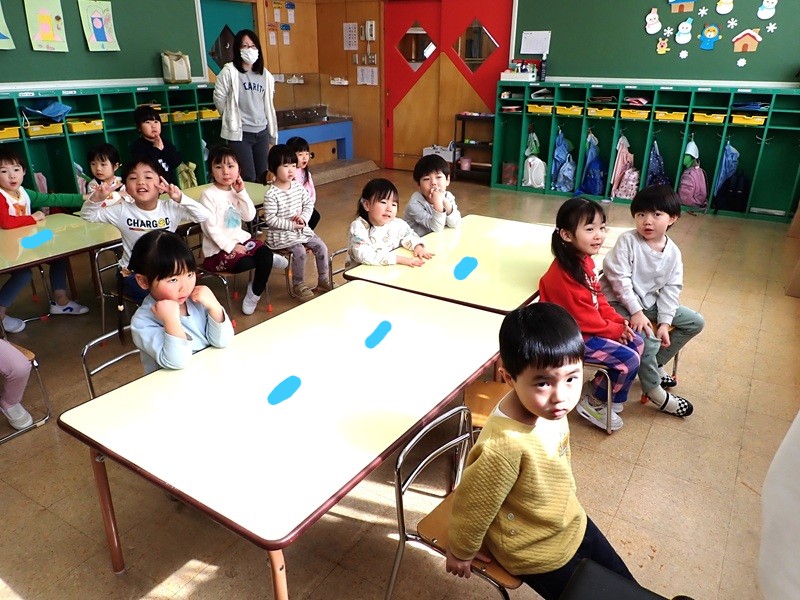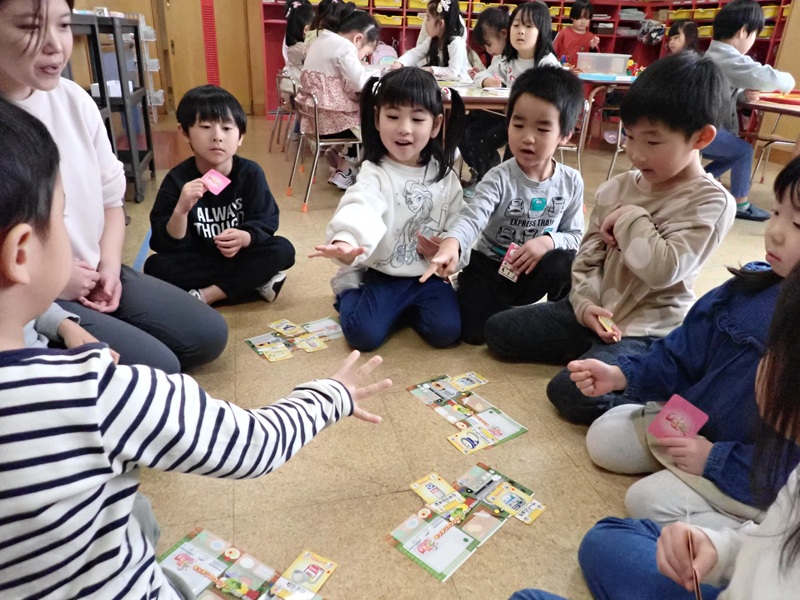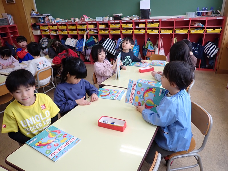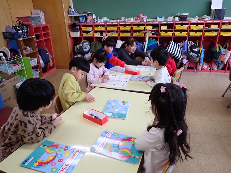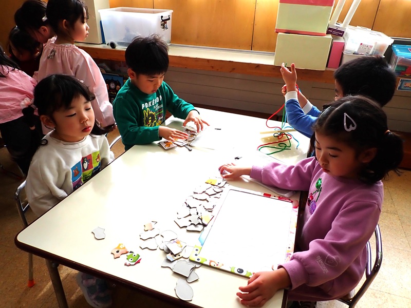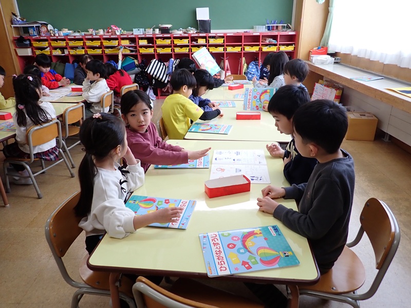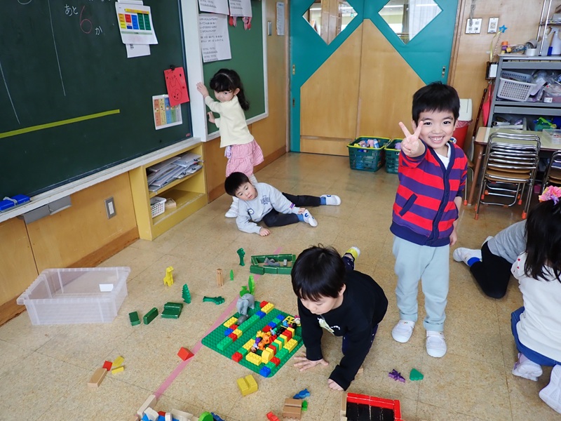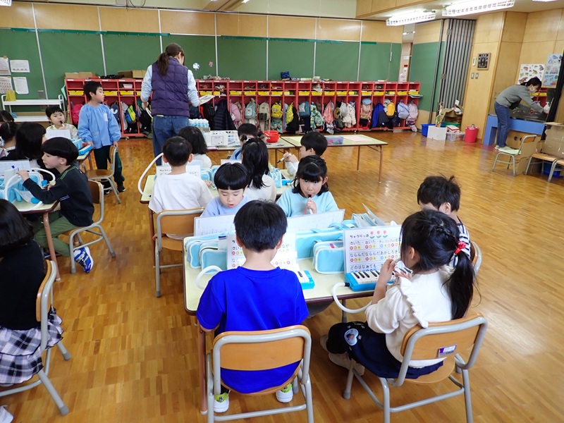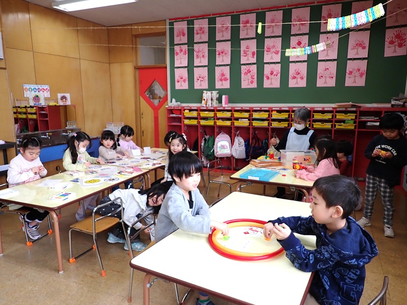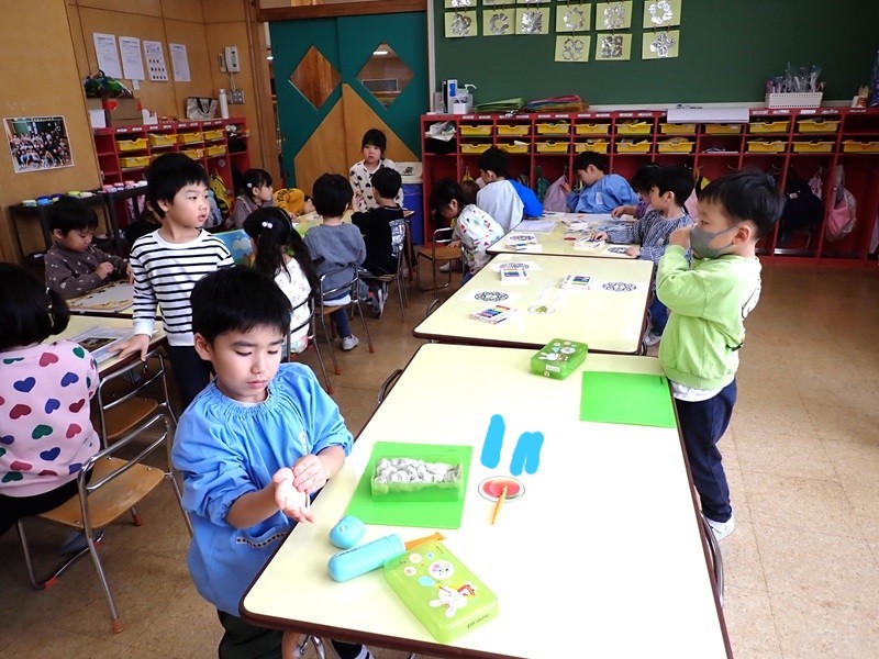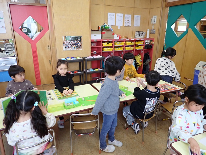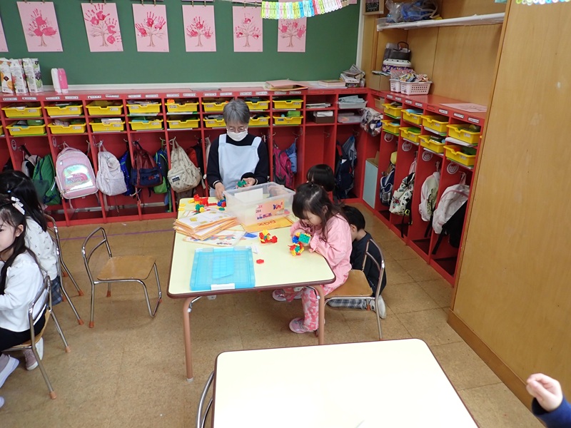 ⑤さくら組さんは教室でグループに分かれていろいろ楽しそうでした。