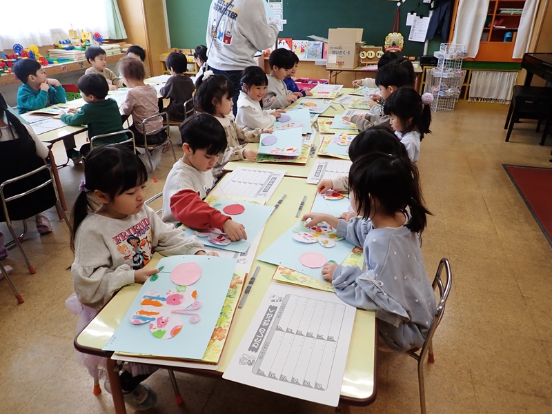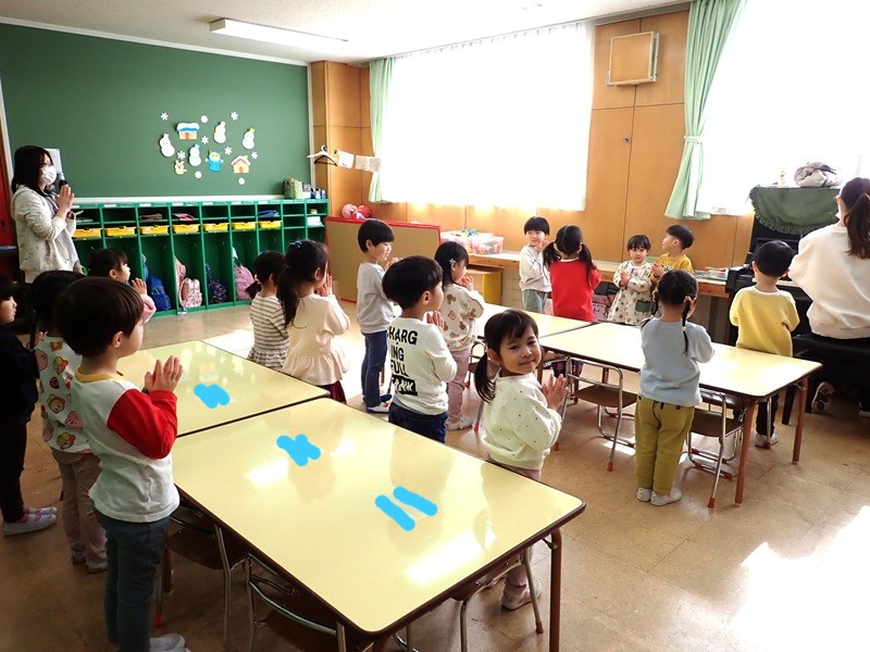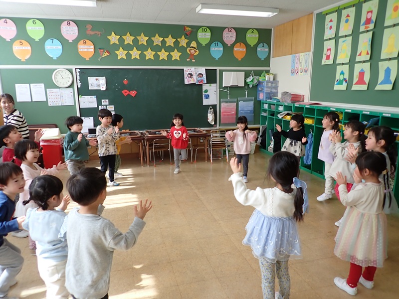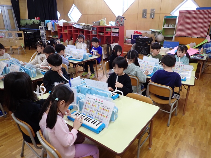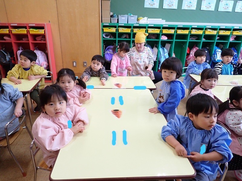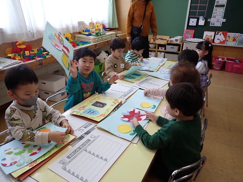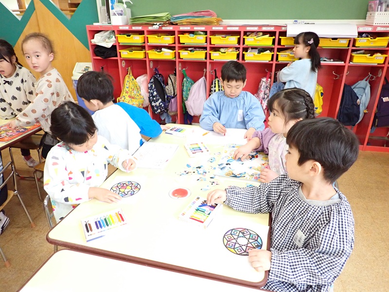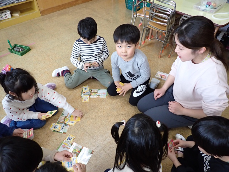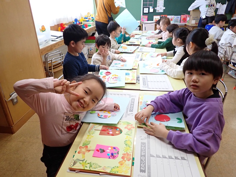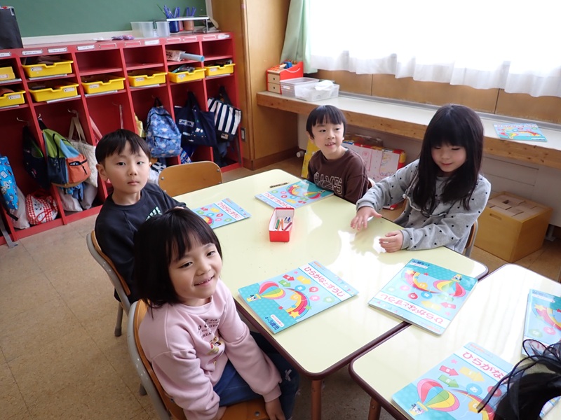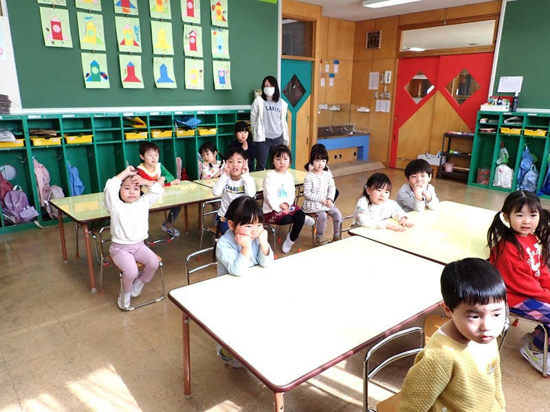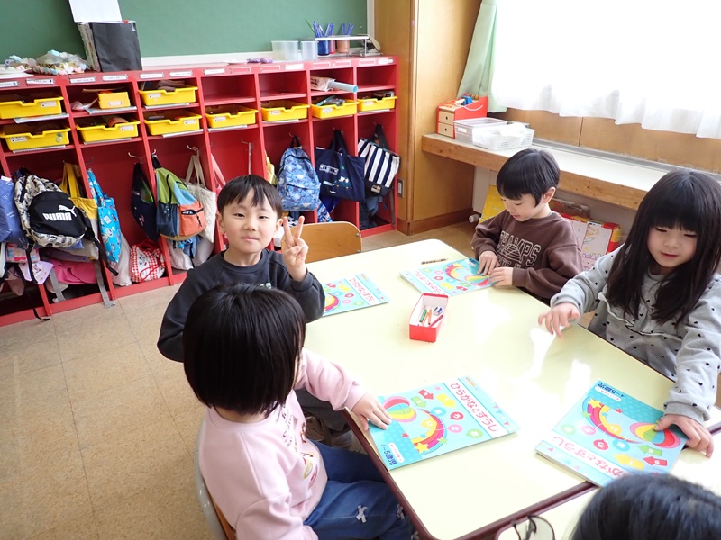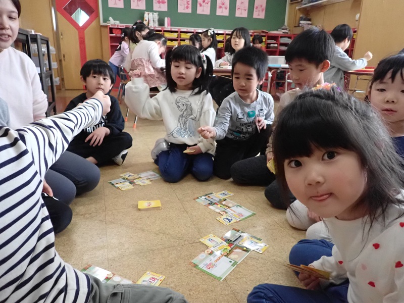 ⑤さくら組さんは教室でグループに分かれていろいろ楽しそうでした。
