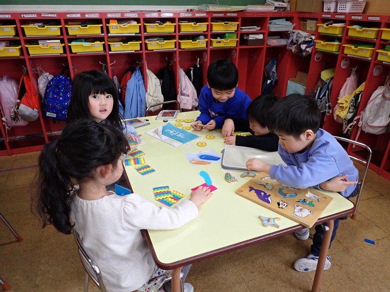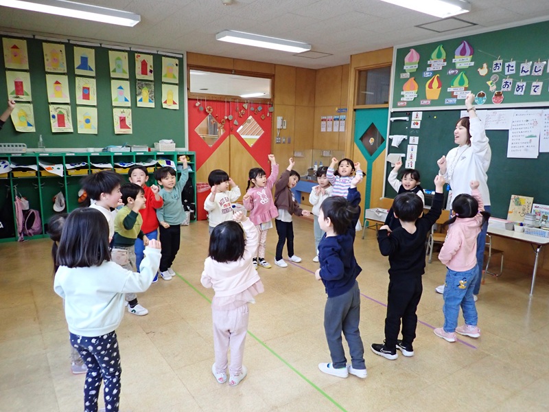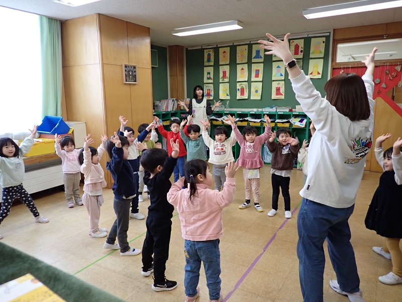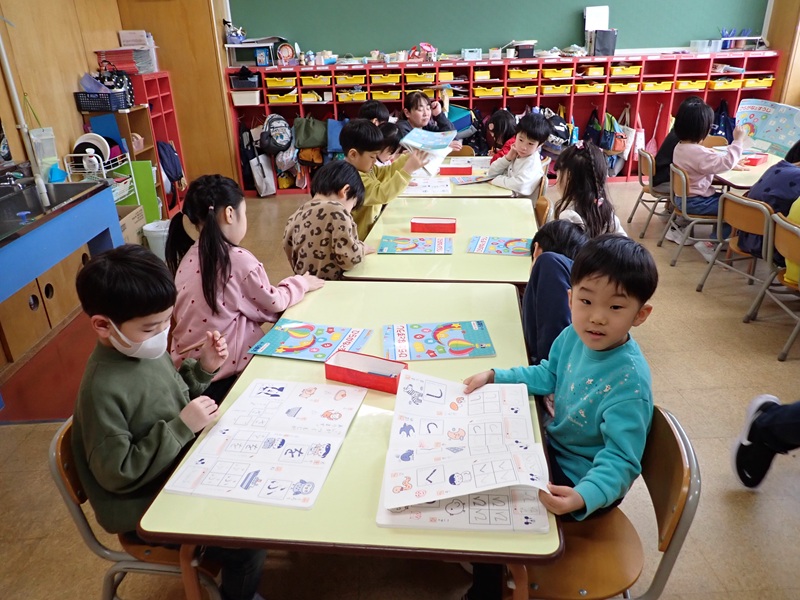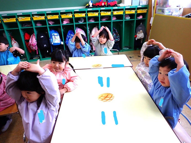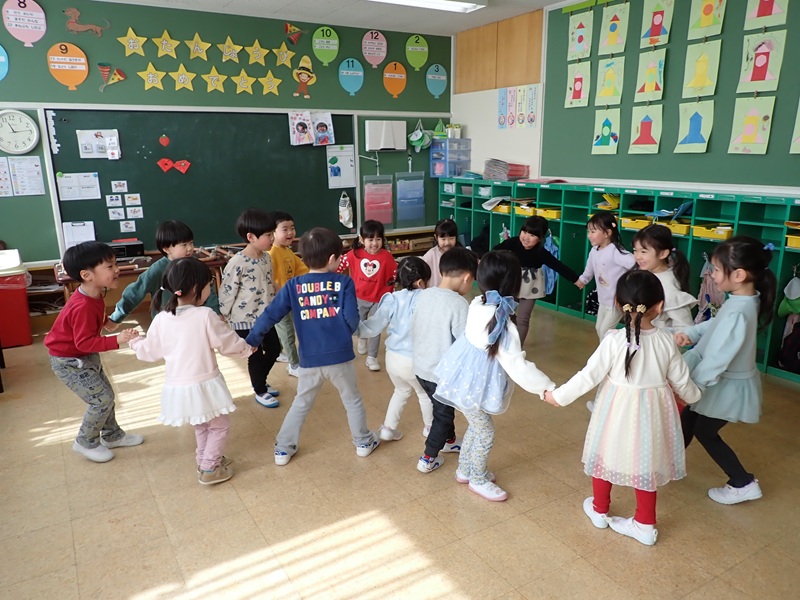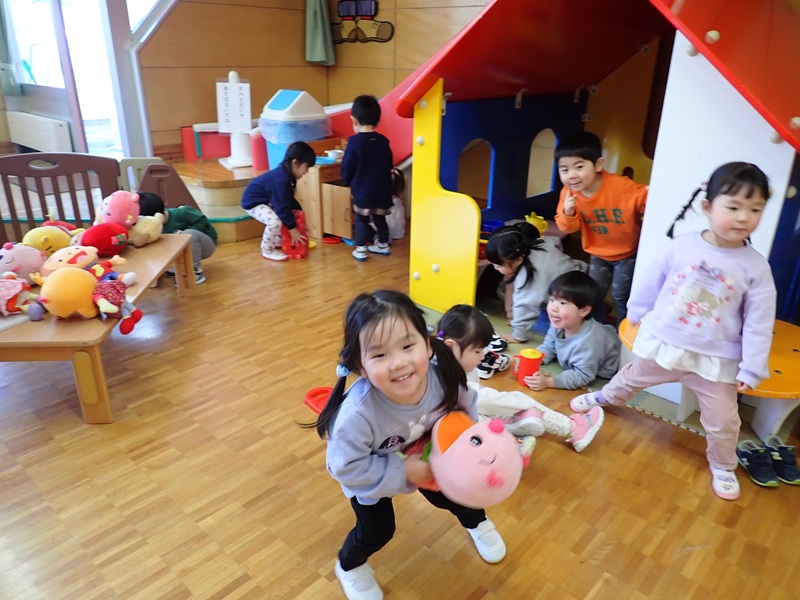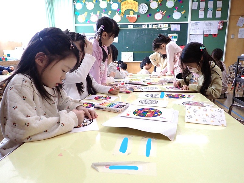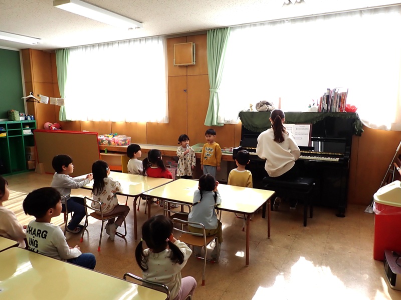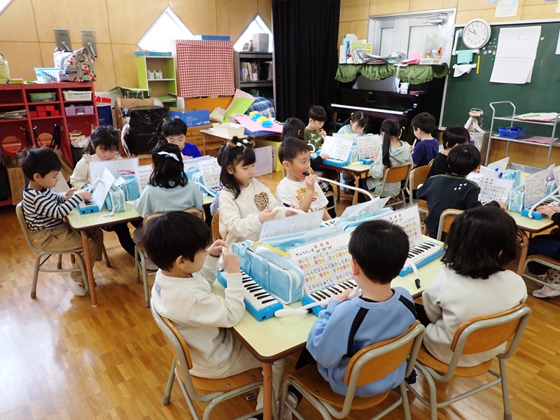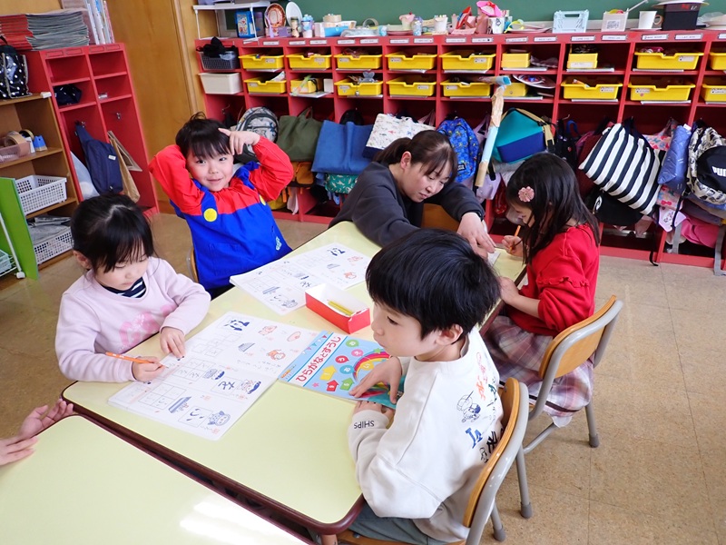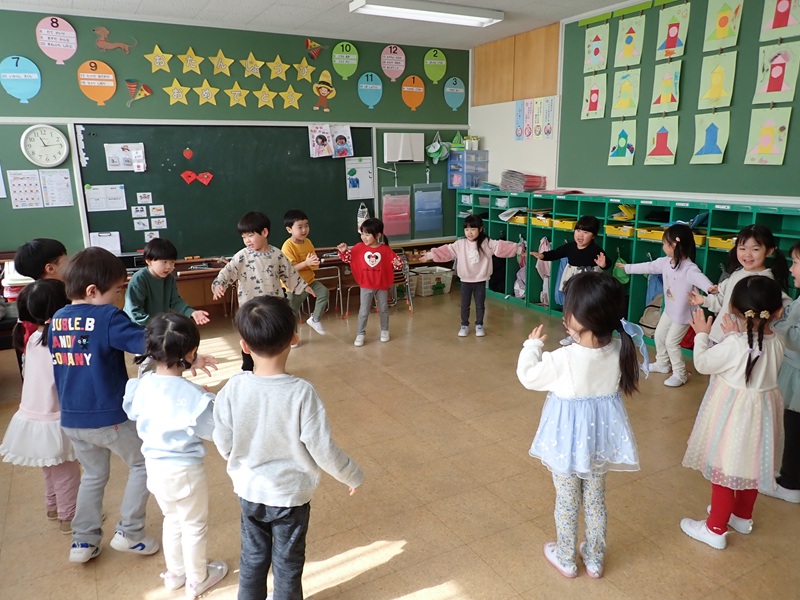 ⑤さくら組さんは教室でグループに分かれていろいろ楽しそうでした。