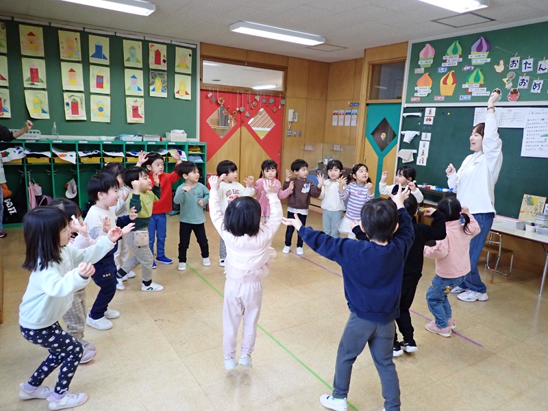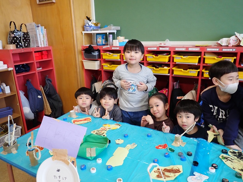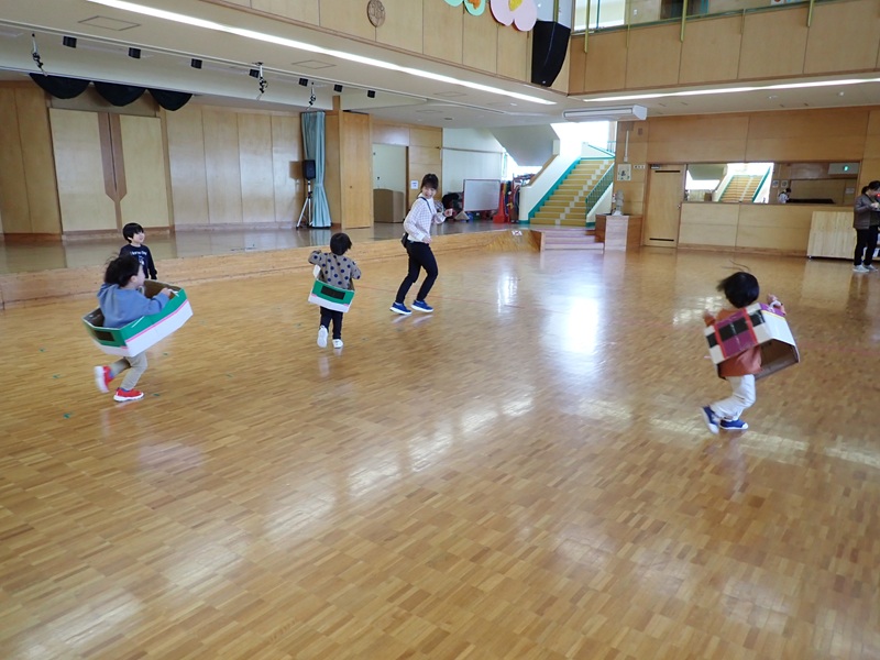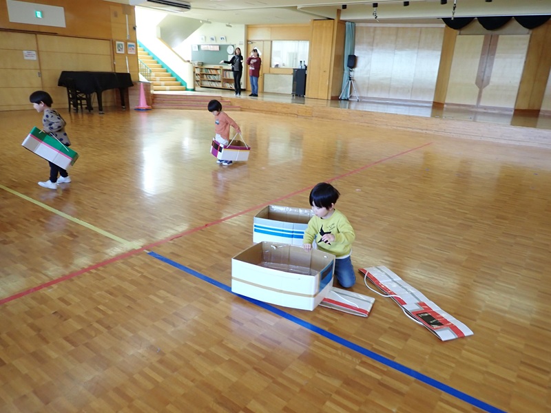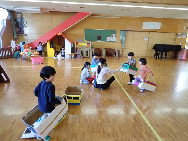 そのあとは、写真にはありませんが、教室内で飛行機に乗っていました。パイロット、キャビンアテンダント、乗客に分かれていました。