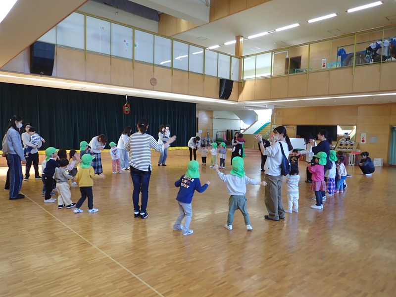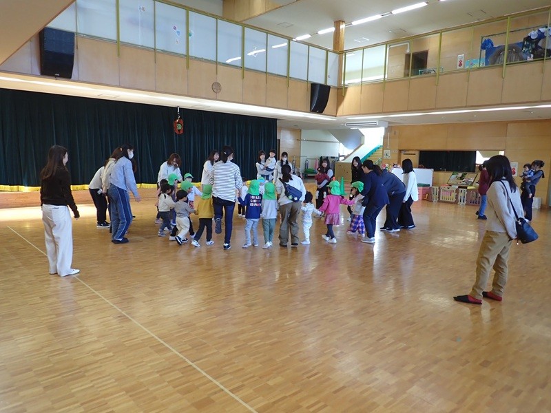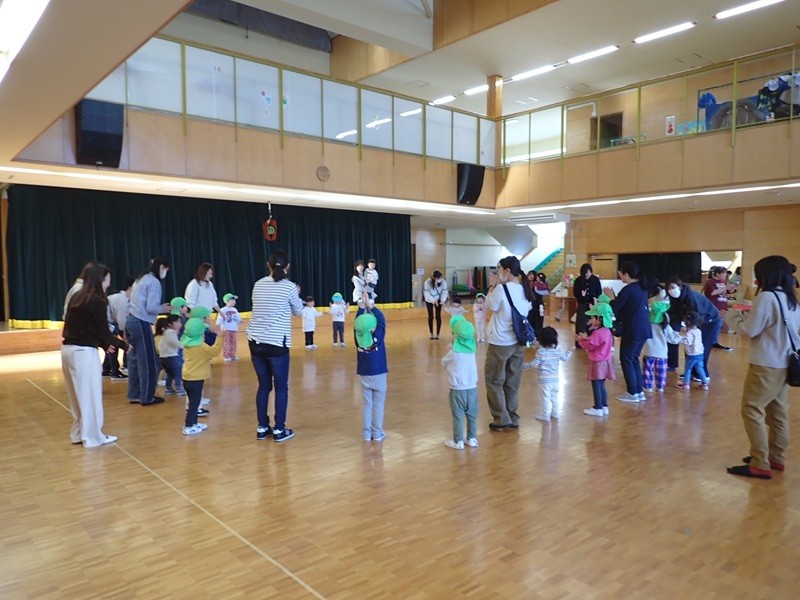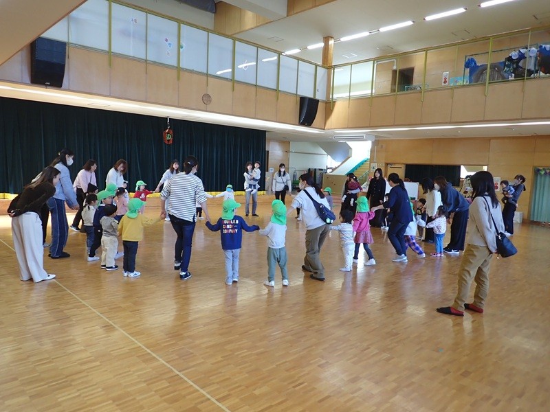 だるまさんが転んだ、手つなぎ鬼をやりました。みんな満面の笑顔で、おもいっきり楽しんでいました。