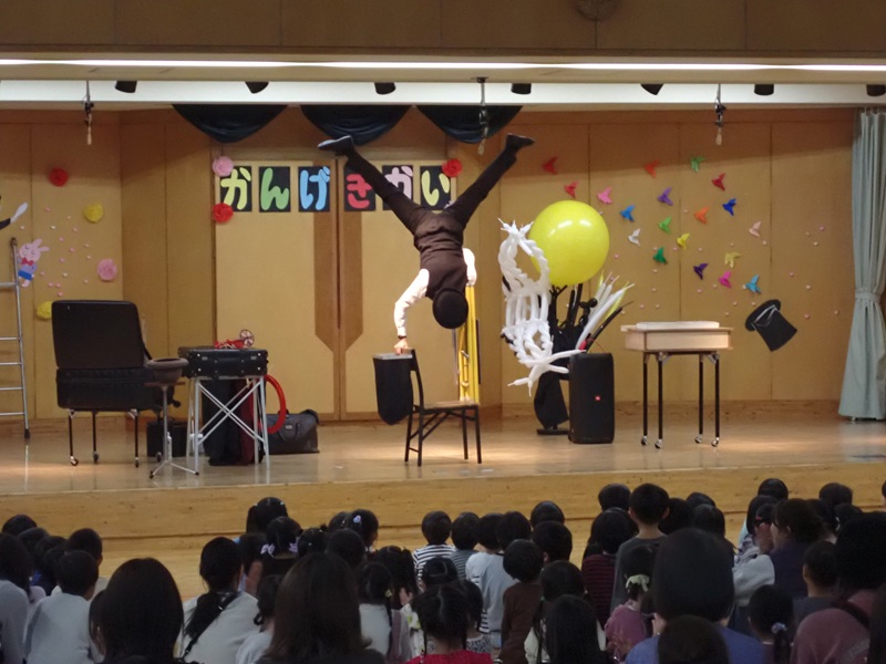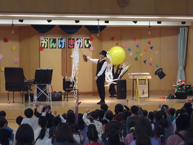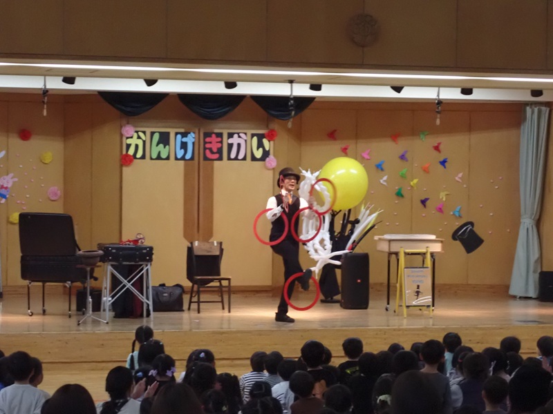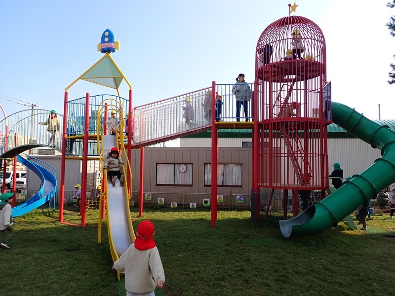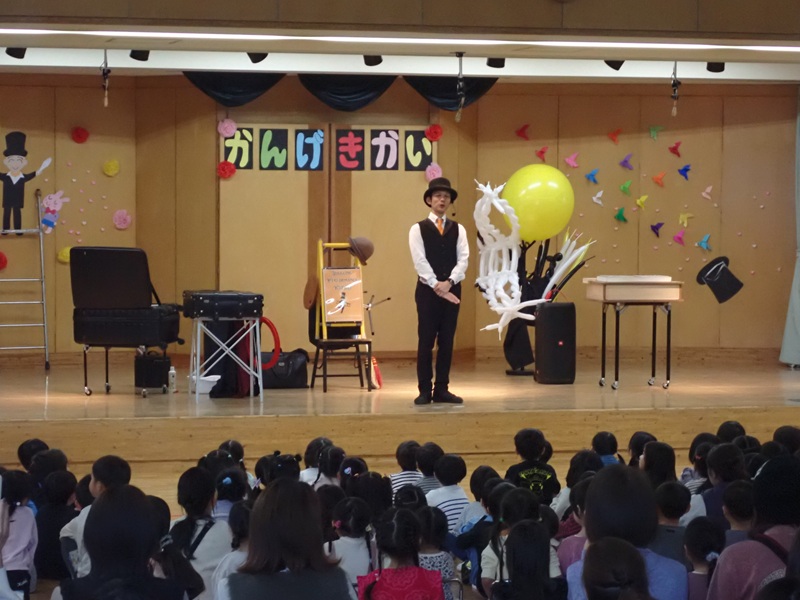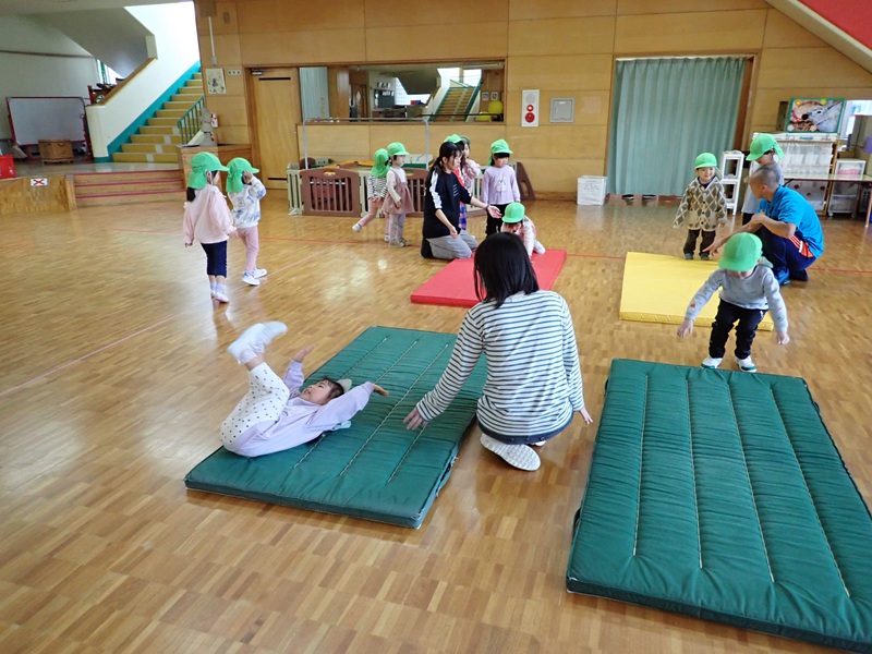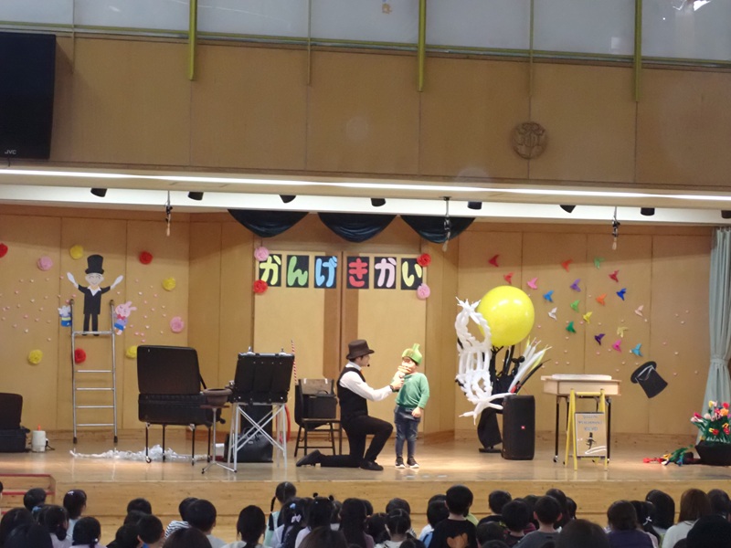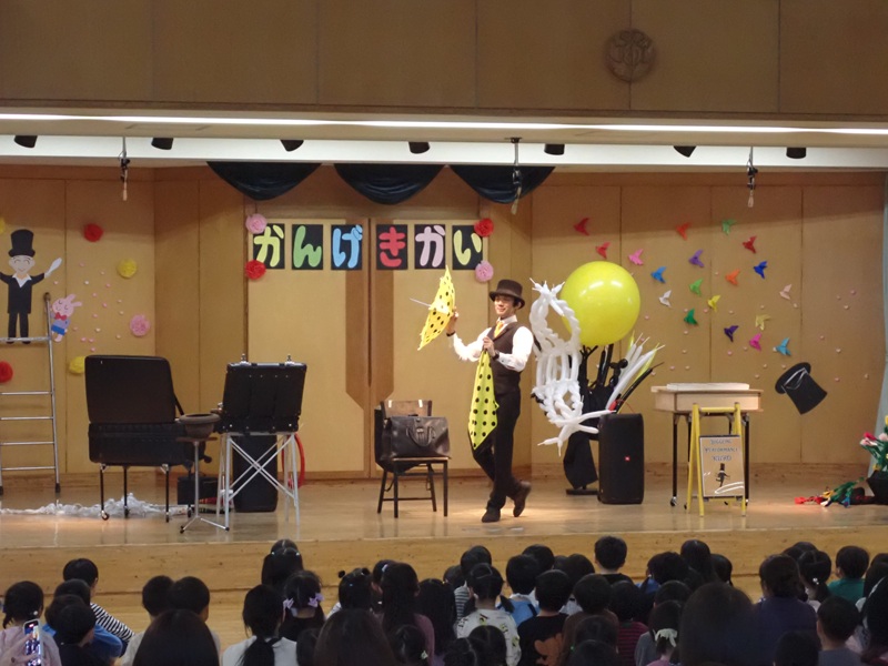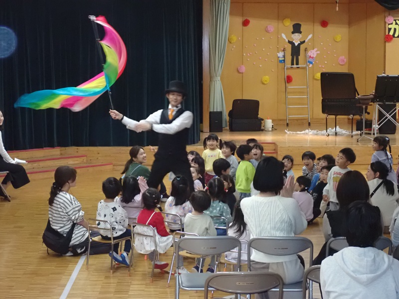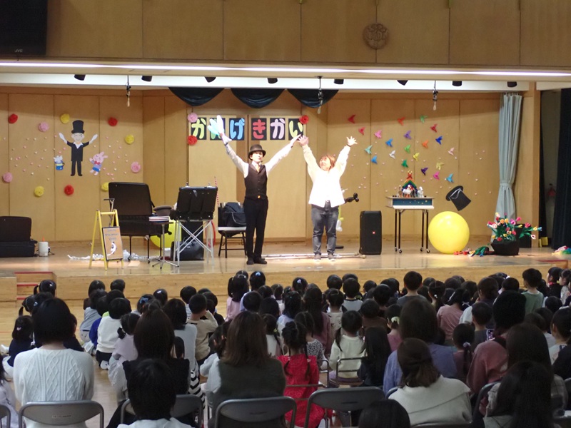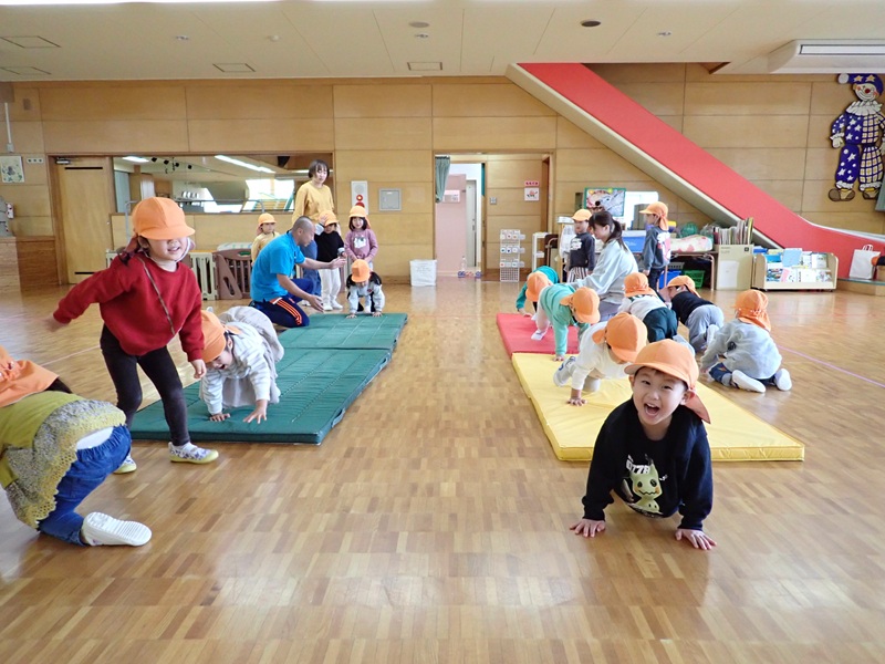 本日は、札幌市東区交通安全推進委員会の方々に来ていただいて、夏に続いての第2弾として「冬の交通安全教室」を実施していただきました。まずは働く車のテーマソングで盛り上がりました。