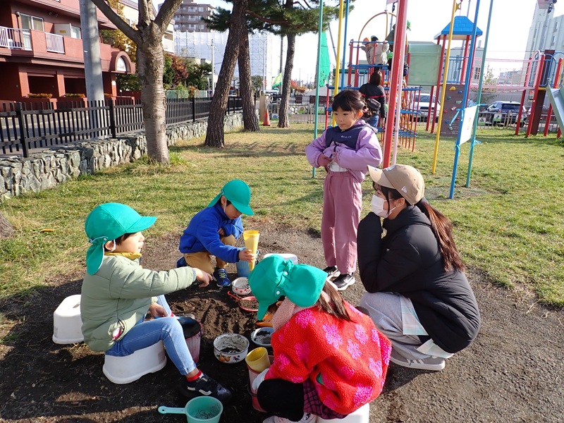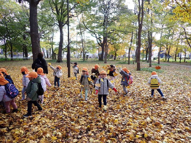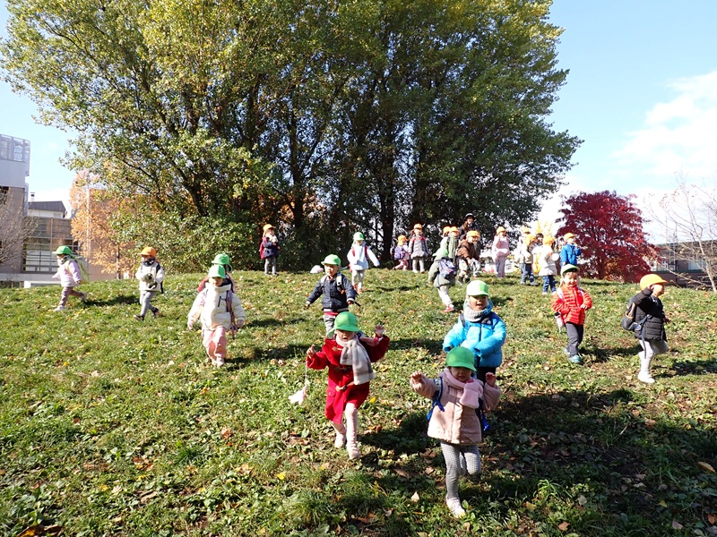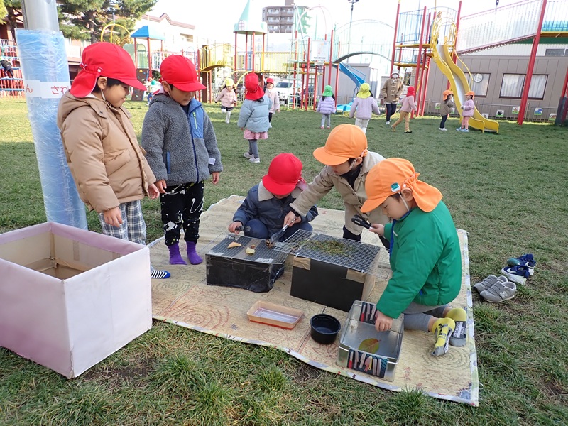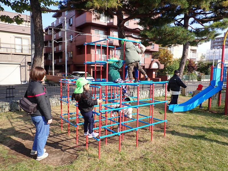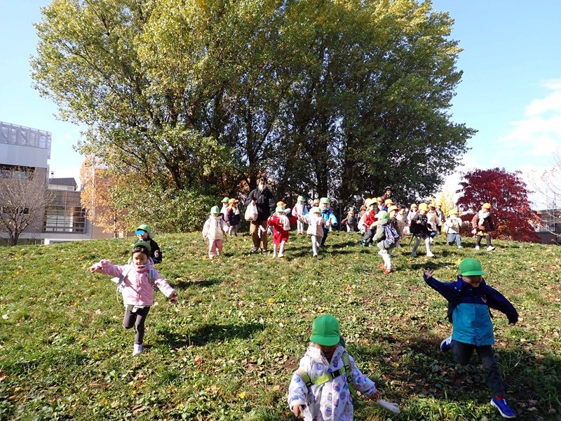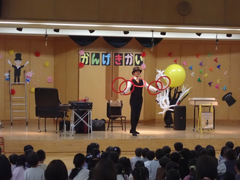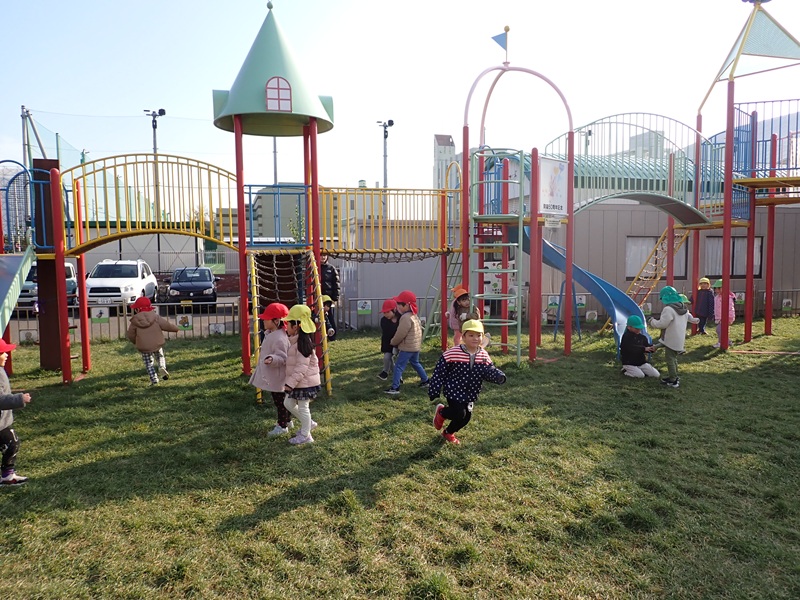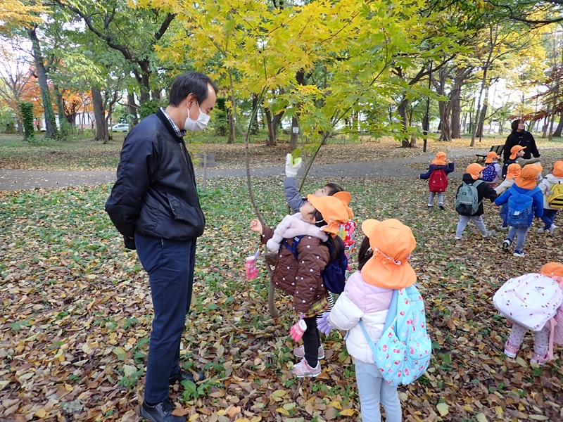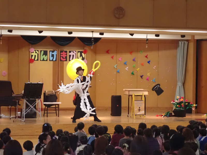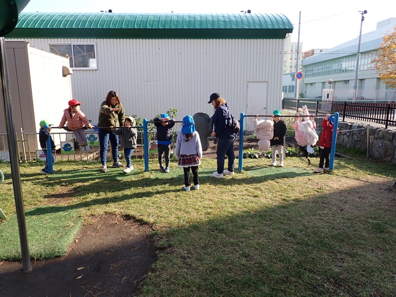 本日は、札幌市東区交通安全推進委員会の方々に来ていただいて、夏に続いての第2弾として「冬の交通安全教室」を実施していただきました。まずは働く車のテーマソングで盛り上がりました。