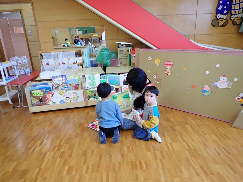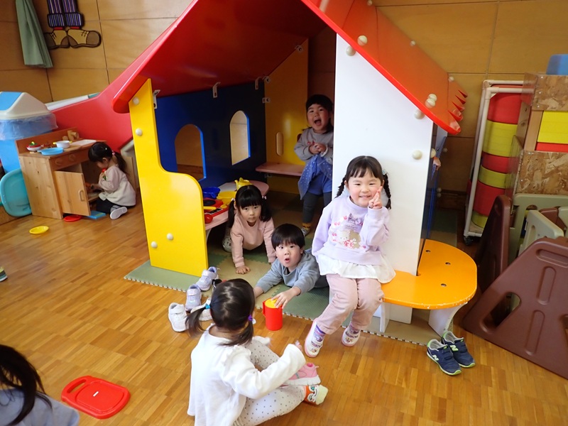 本日の午前中の様子です。①もも組さんがすべり台で遊んでいました。