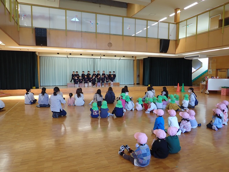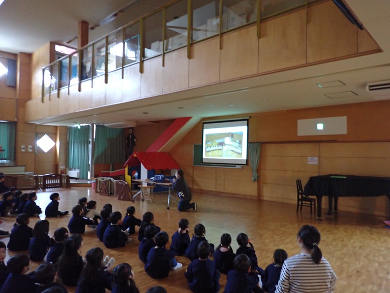 12/11(木)に、明園小学校の5年生が附属大谷幼稚園を訪問してくれて、交流会があったことを報告しておりましたが、今日は年長組さんが明園小学校を訪問させていただきました。