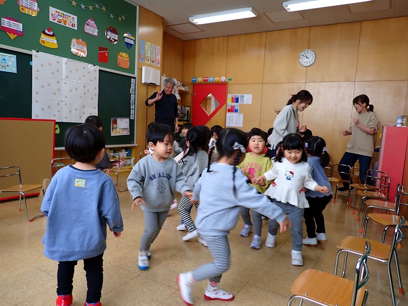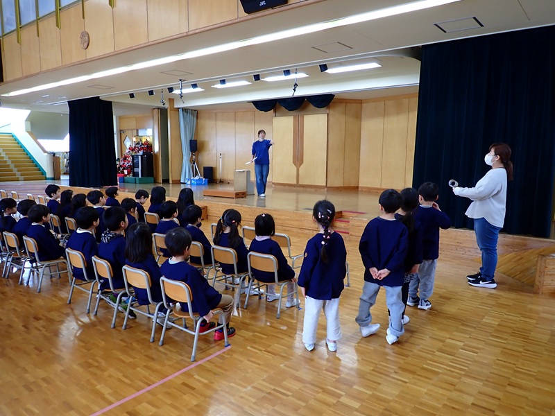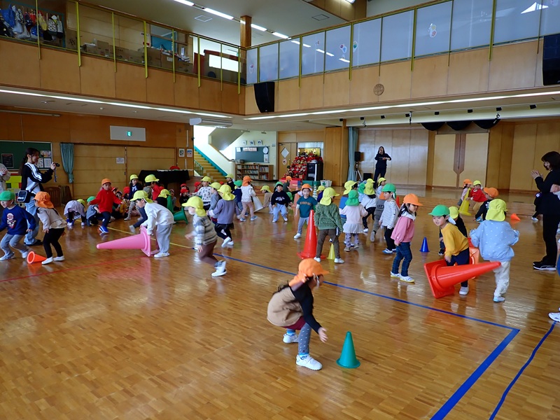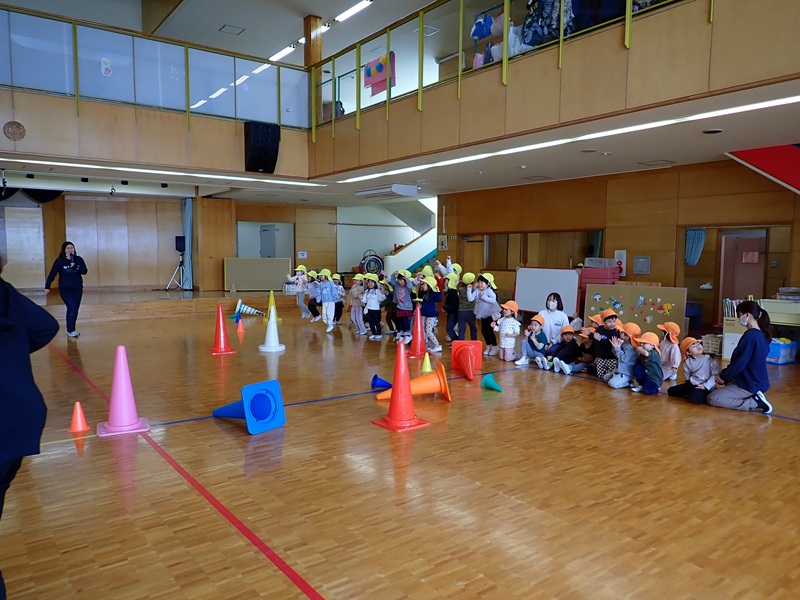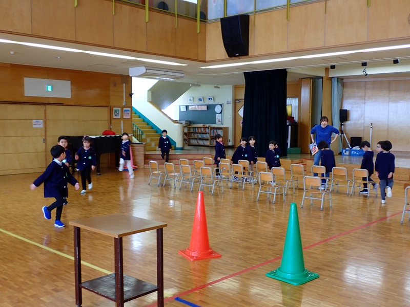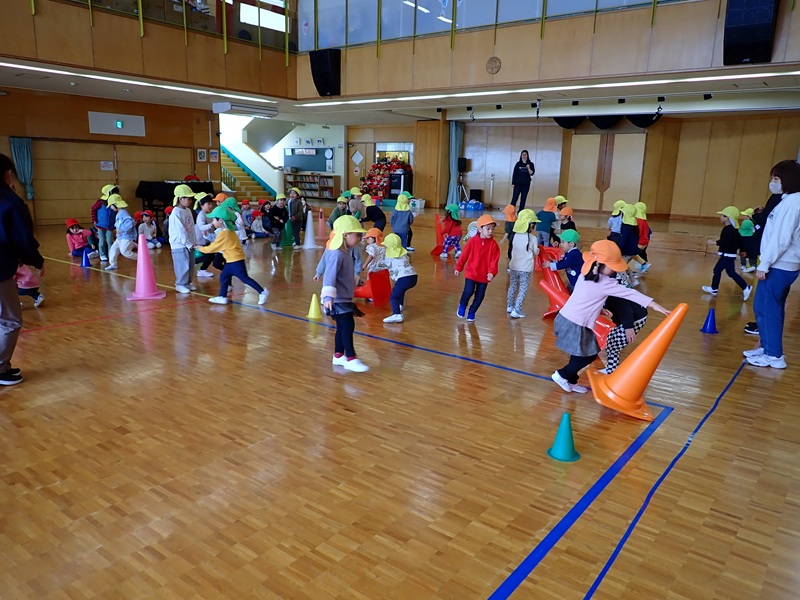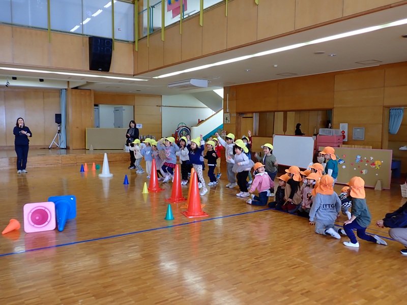 今日の午前中は、年中組さんと年長組さんが運動教室でした。順番は、さくら組さん→たんぽぽ組さん→あじさい組さん→ゆり組さんの順でした。