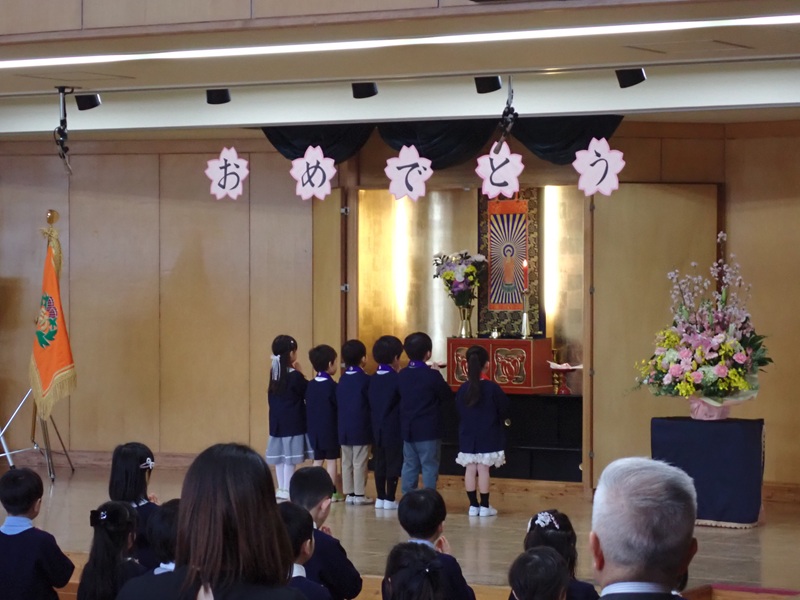 以前もお話ししましたが、今回の卒園はここでのステージをクリアしたことで得られた、次のステージにチャレンジできる権利です。でも、この権利は自分一人の力で得たものではありません。周りのたくさんの人たちの協力があってのものです。ですから感謝の気持ちを忘れないでください。次のステージではまた一からやり直すこととなります。常にその繰り返しが成長を大きく助けてくれます。でも毎日進歩し続ける訳ではありません。晴れの日があったり、雨の日があるのと同じように、昨日は良かったのに、今日は駄目という場合もあります。そういう日々の細かな繰り返しと、今回のようなステージが変わる大きな繰り返しをやり続けることでこそ、ものすごい力が溢れてくるのです。ちょっと難しいかもしれませんが、成長こそ人生の目的、生きる意味だと思っています。次なるステージの小学校に入学し、札幌大谷大学附属幼稚園を卒園したという誇りと自信を持って、元気に通ってください。いつも応援しています。そして、ぜひ遊びに来て小学校でのお話を聞かせてください。待っています。