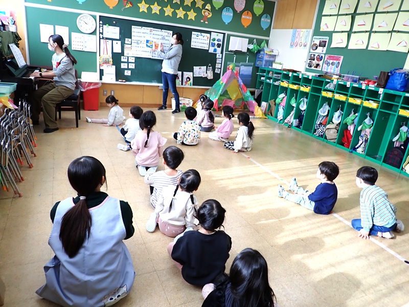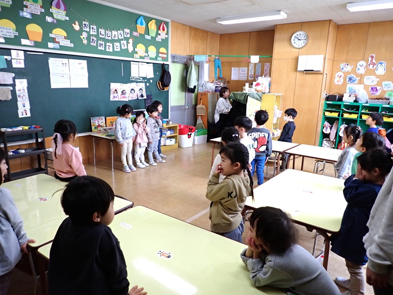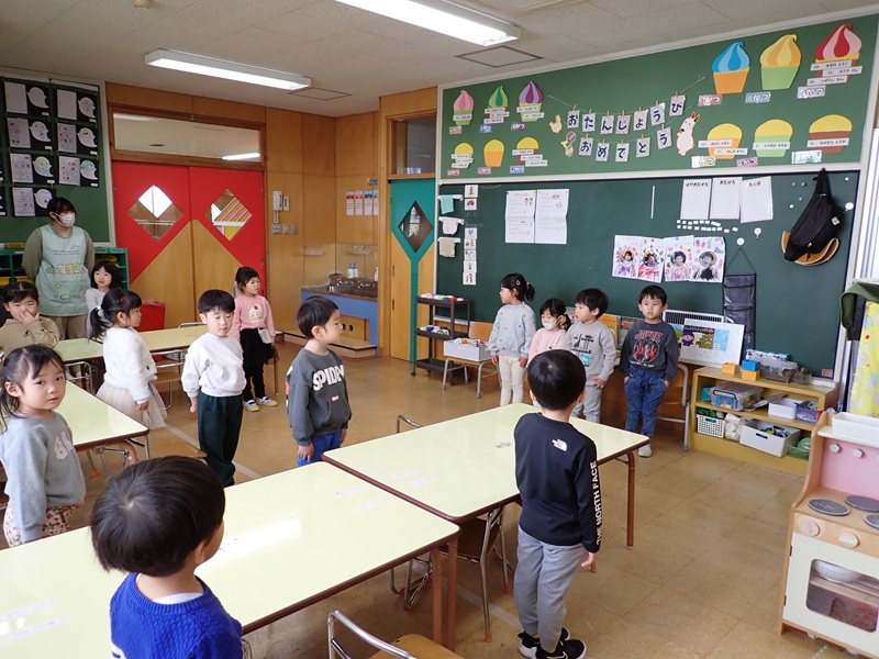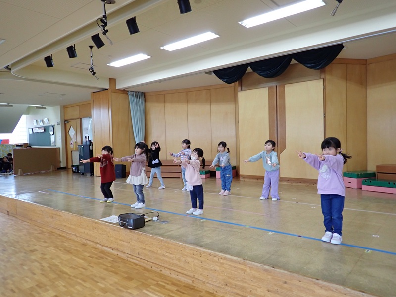 お片付けのあとは、あんず組さんが発表会の練習をしていました。