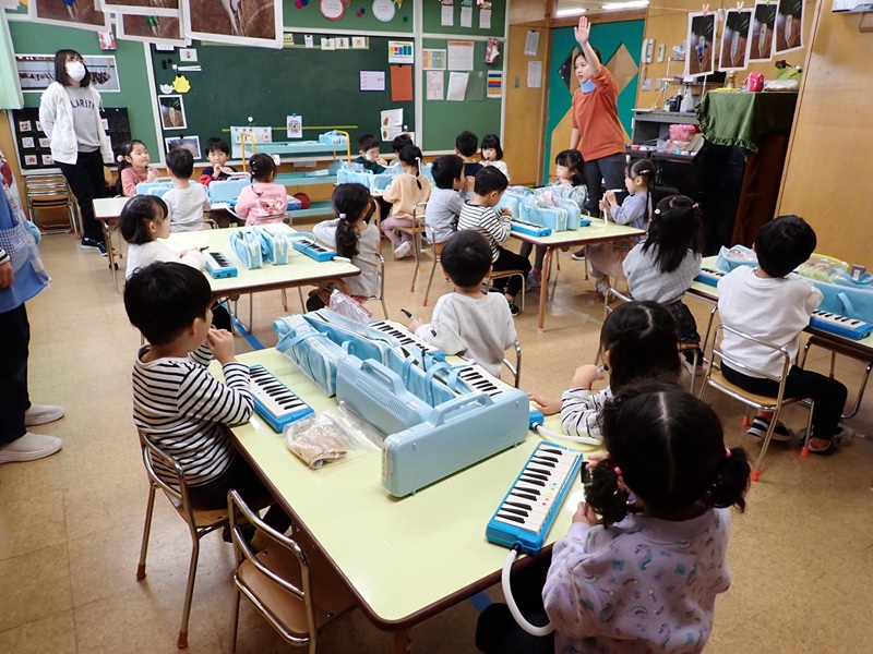 次に事前に作ってあったカスタネットの見本でも音を聞いて、みんなで「同じ音だぁ~」と盛り上がっていました。