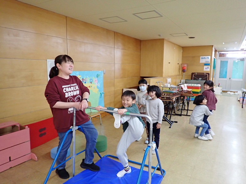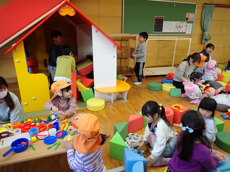 本日は、登園後の朝のホールでの様子をご欄ください。みんな朝から元気いっぱいに遊んでいました!!!