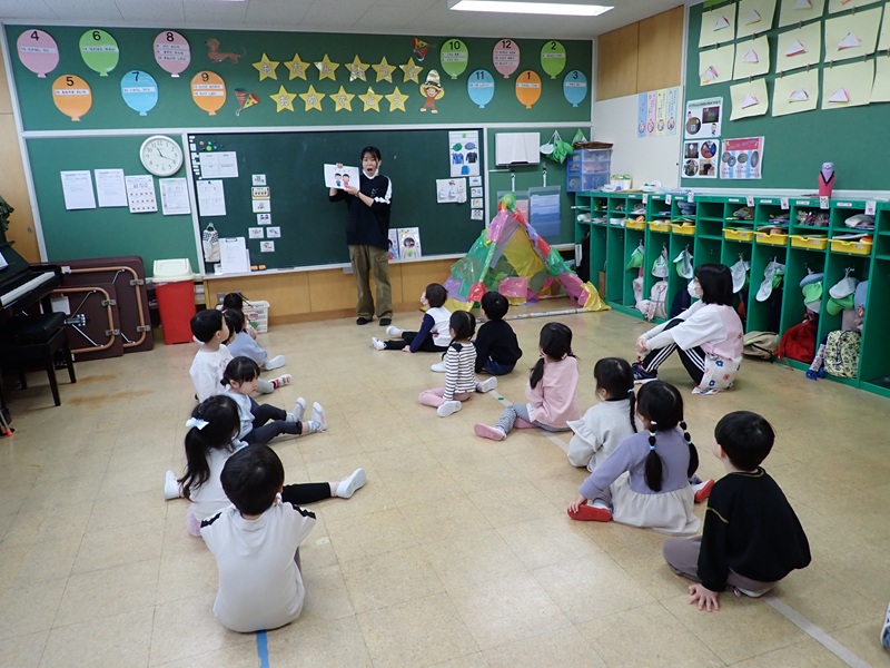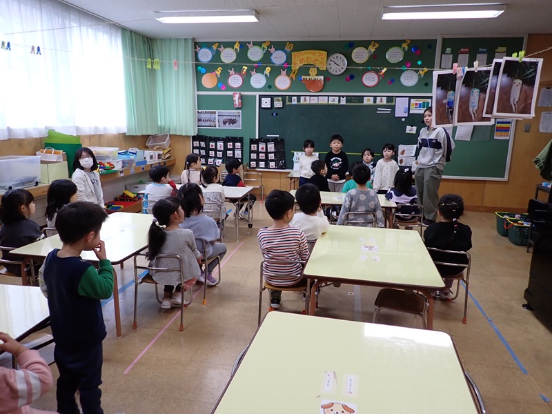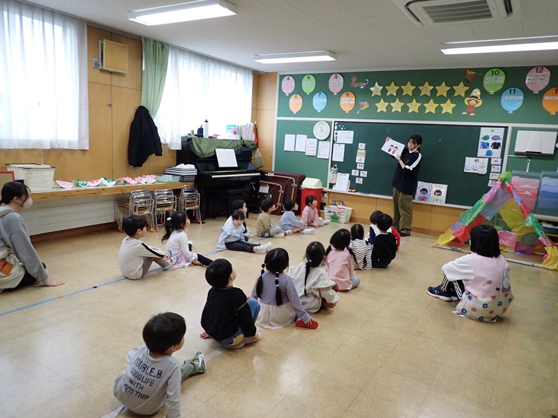 7.あじさい組さんは、実習の先生がお話をしてくれていたようです。
