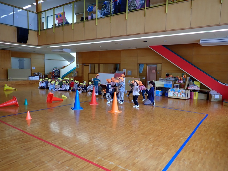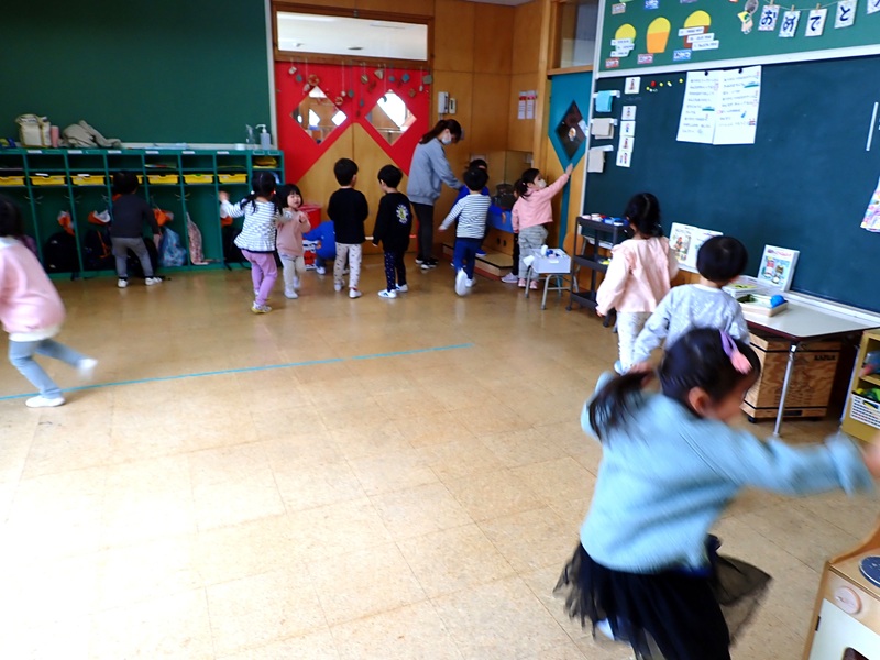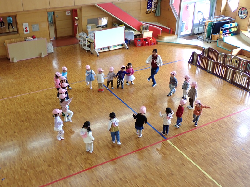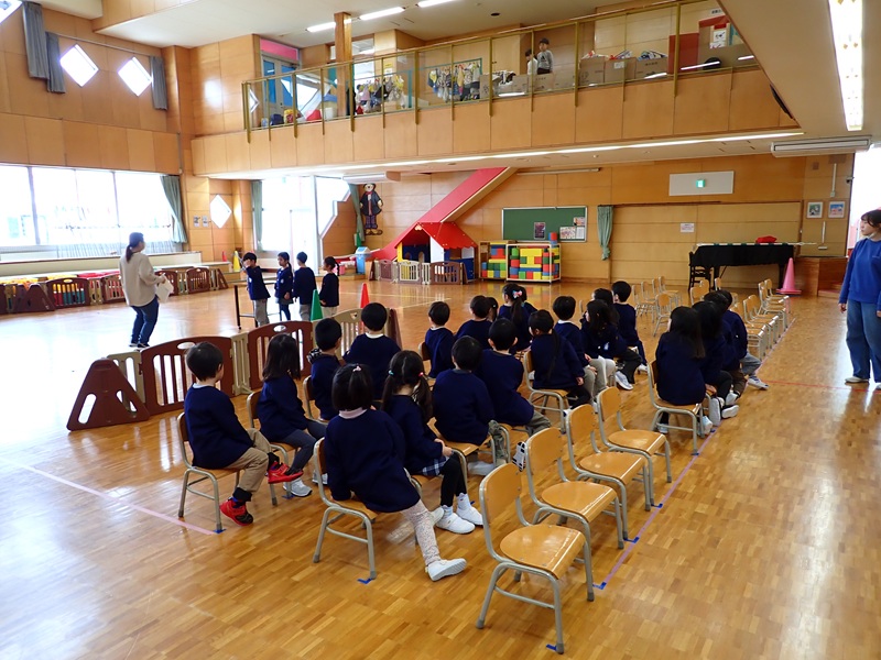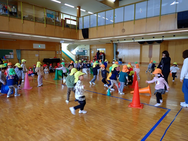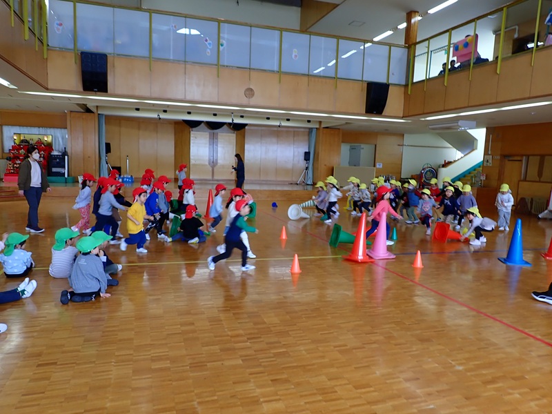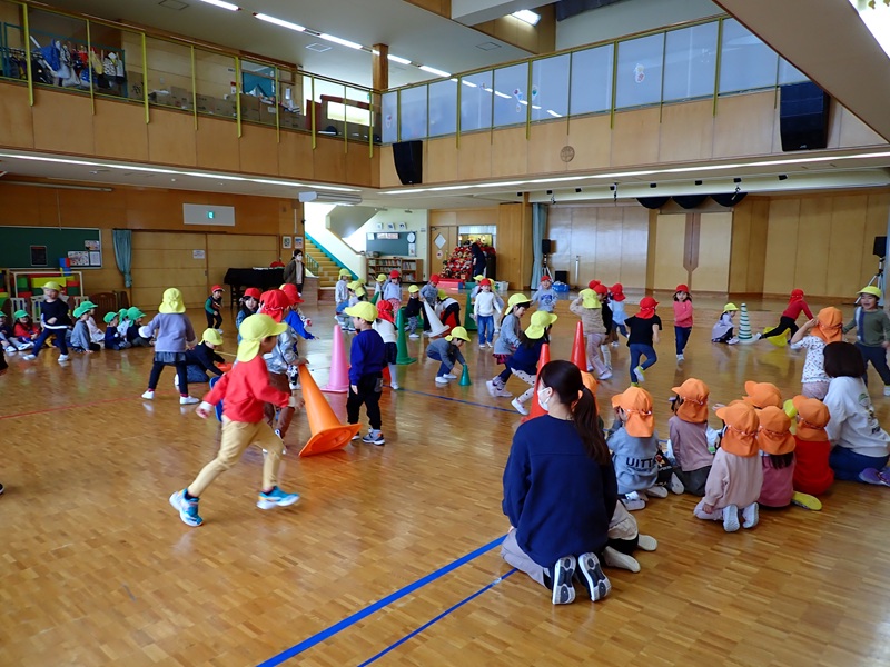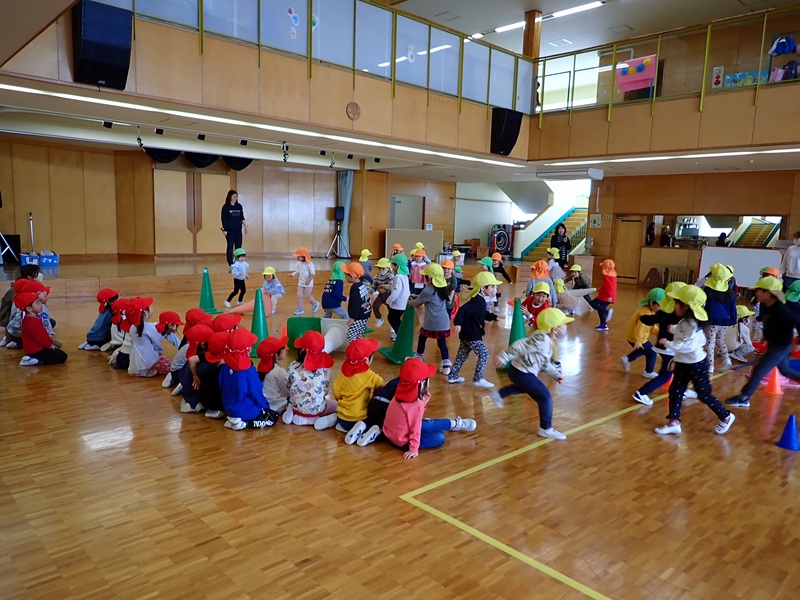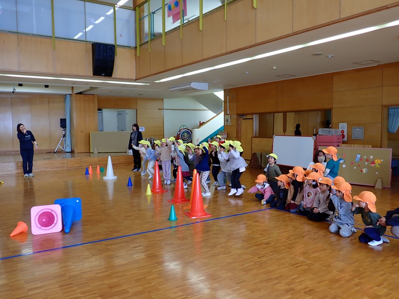 今日の午前中は、年中組さんと年長組さんが運動教室でした。順番は、さくら組さん→たんぽぽ組さん→あじさい組さん→ゆり組さんの順でした。