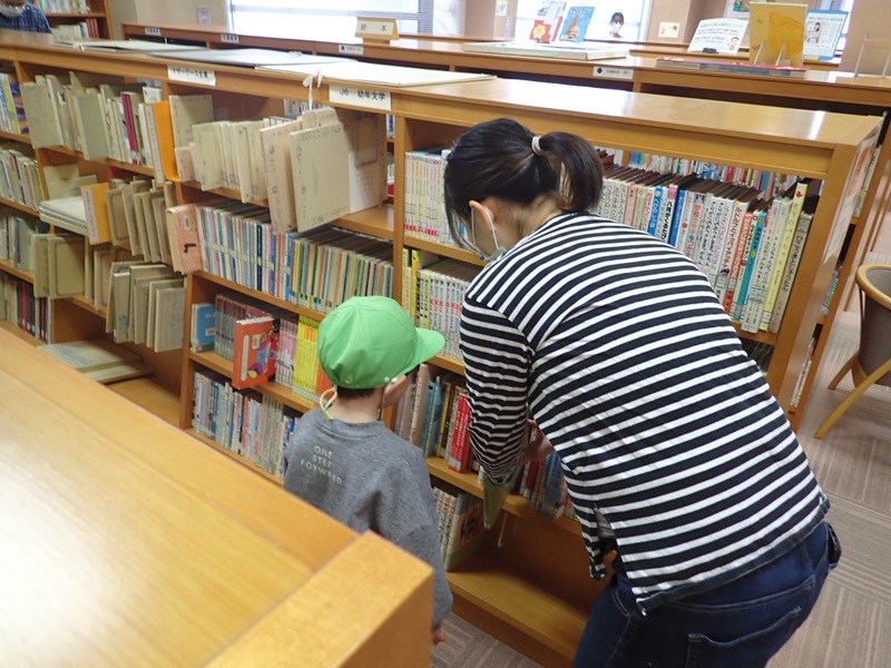 たくさんある絵本から、どれにしようか迷っていた様子です。