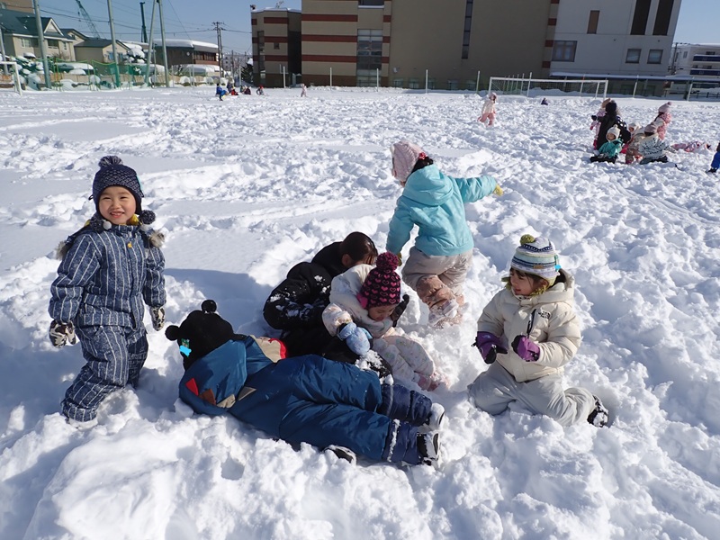 道具等を使わない、体だけでみんな雪まみれになってまさに思いっきり遊べました。