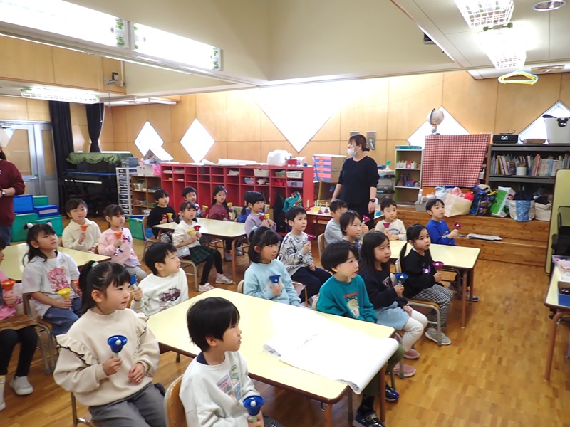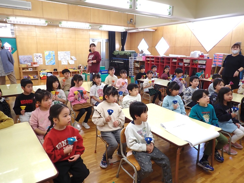 ③年長組さん合同でベルの練習風景です。とてもきれいな音色でした。