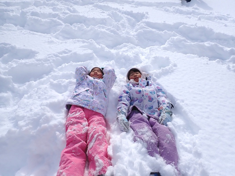 そして、思いっきり背中から倒れる感覚を楽しんだり、粉雪をたくさんつかんで上にあげたりして、雪のシャワーを浴びたりして、ものすごく楽しい時間を過ごせました。