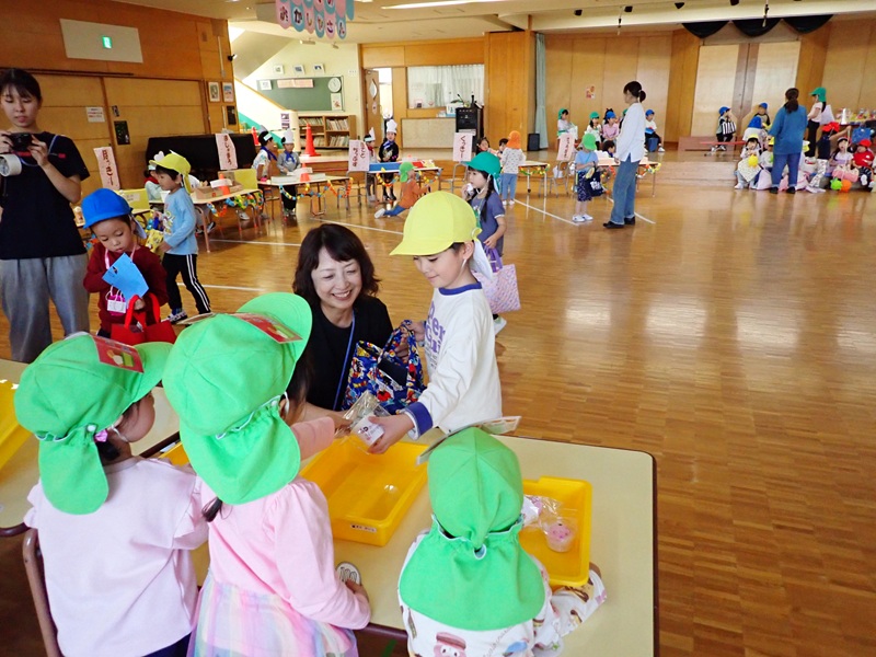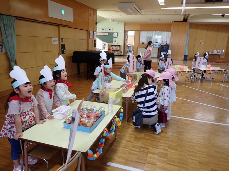 お店の店員さんになった園児さんは、一所懸命に「いらっしゃいませ~」と大きな声でアビールしていました。
