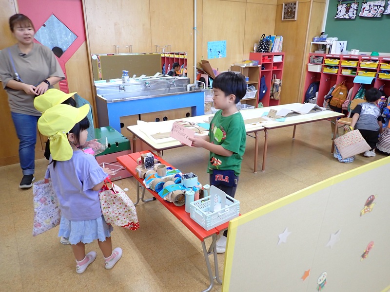明日は、お店屋さんとお客さんを交代して、お店屋さんごっこの2日目になります。