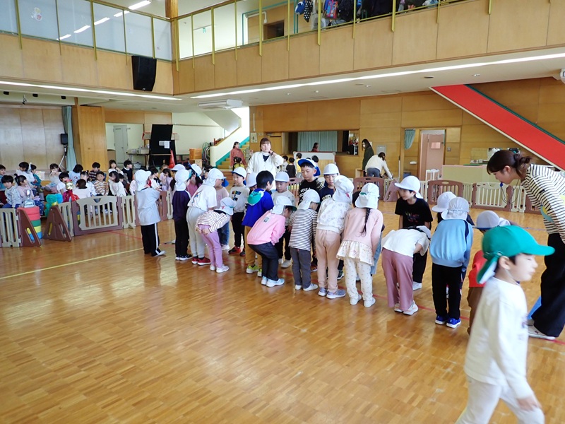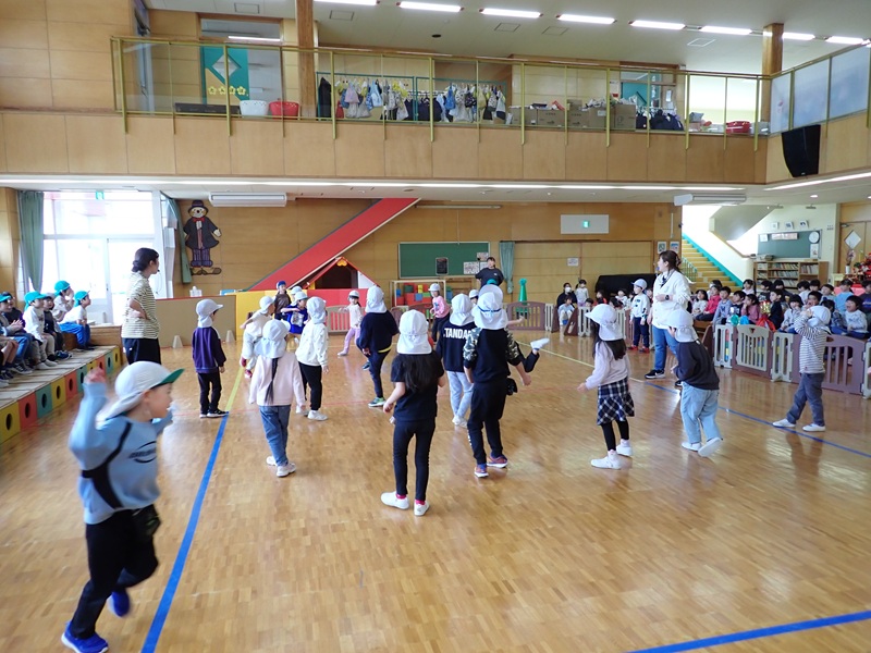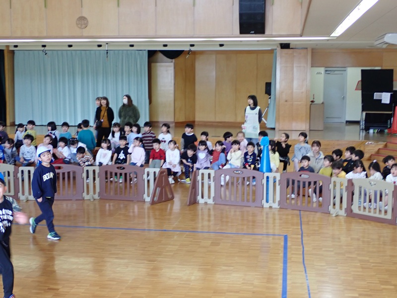 ⑦年少組さんがメンバーを入れ替えて、椅子取りゲームをしていました。