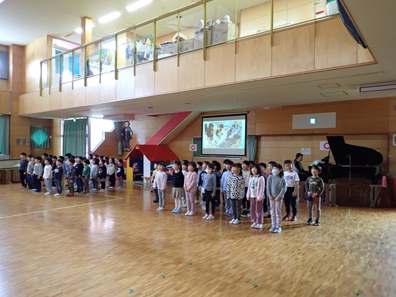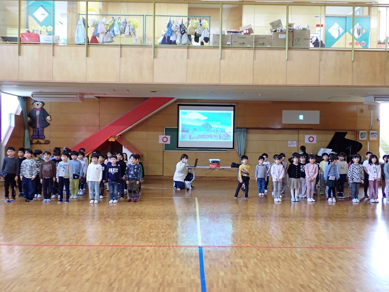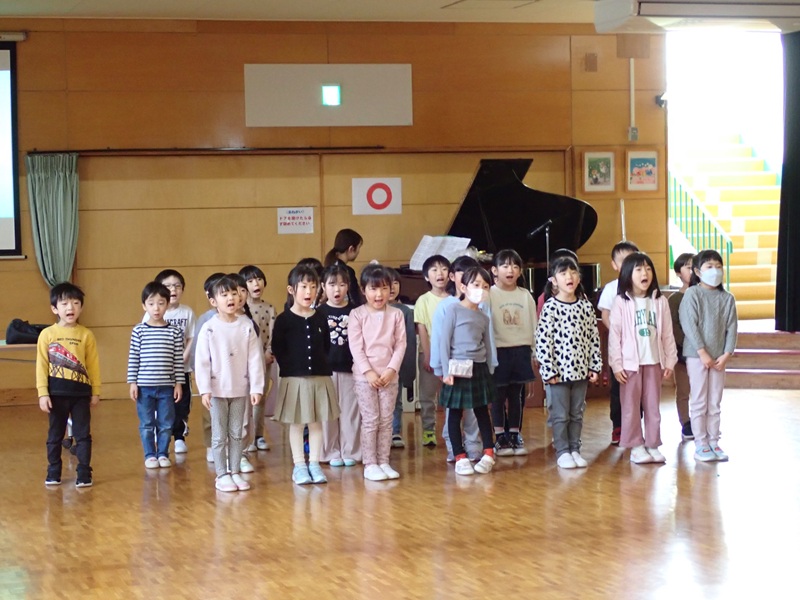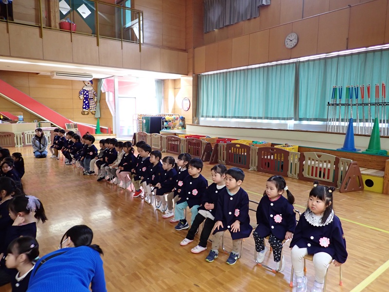 ⑤さくら組さんが卒園式の練習をしていました。
