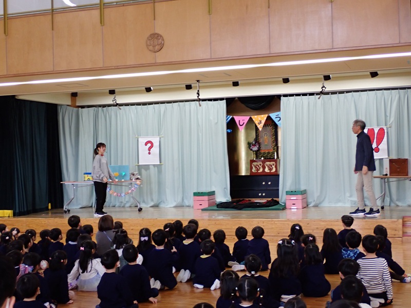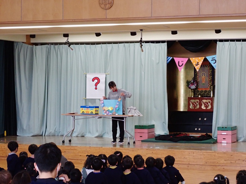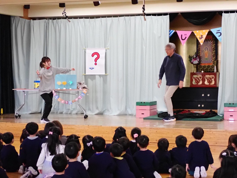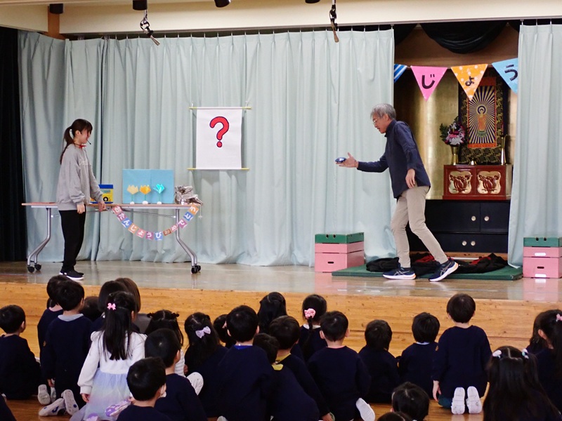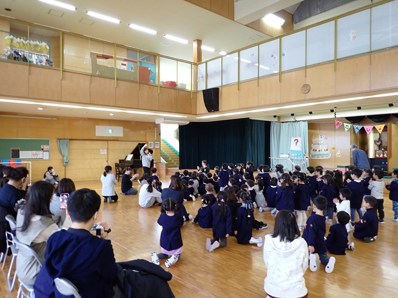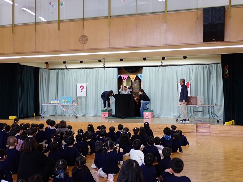 本日は、11月生まれの園児さんたちの誕生会でした。今日は、鈴木先生と藤原先生による大マジックショーが開催されました!!!