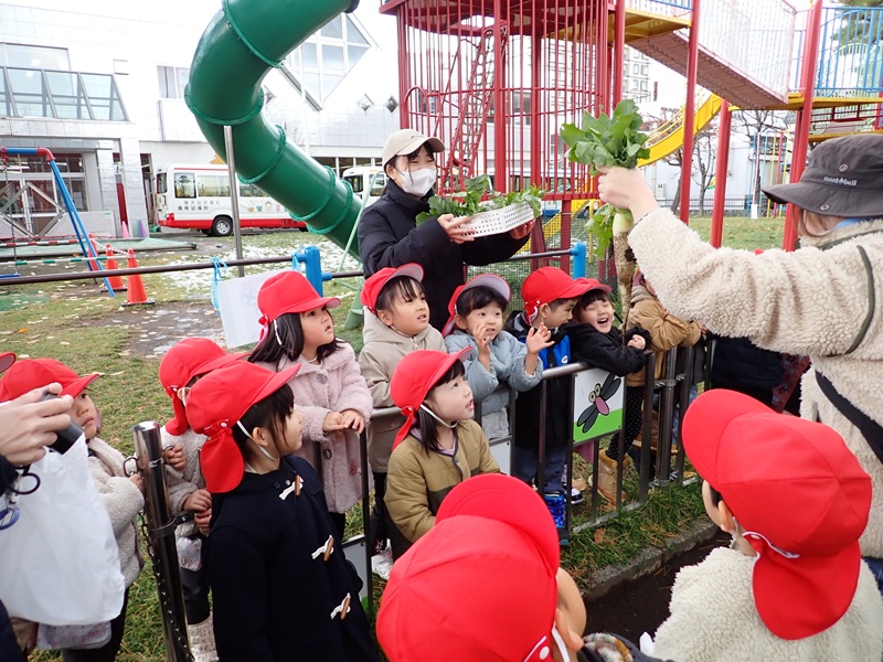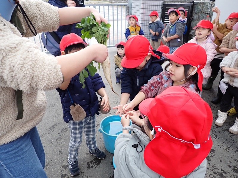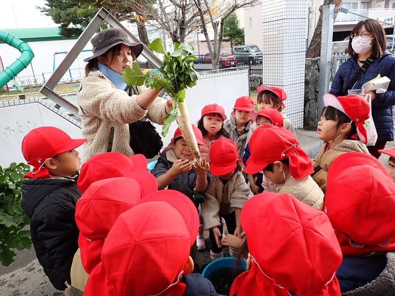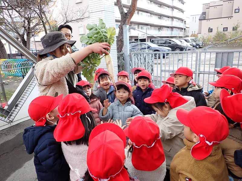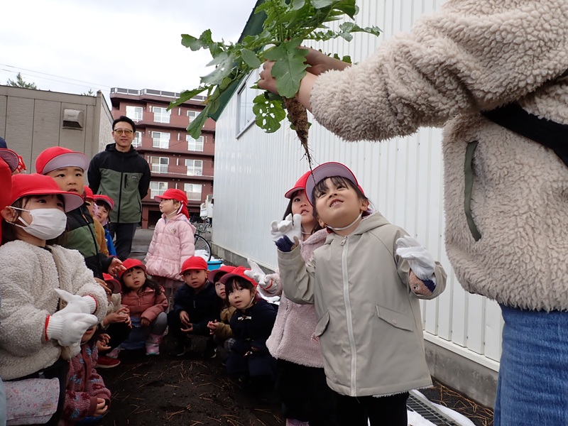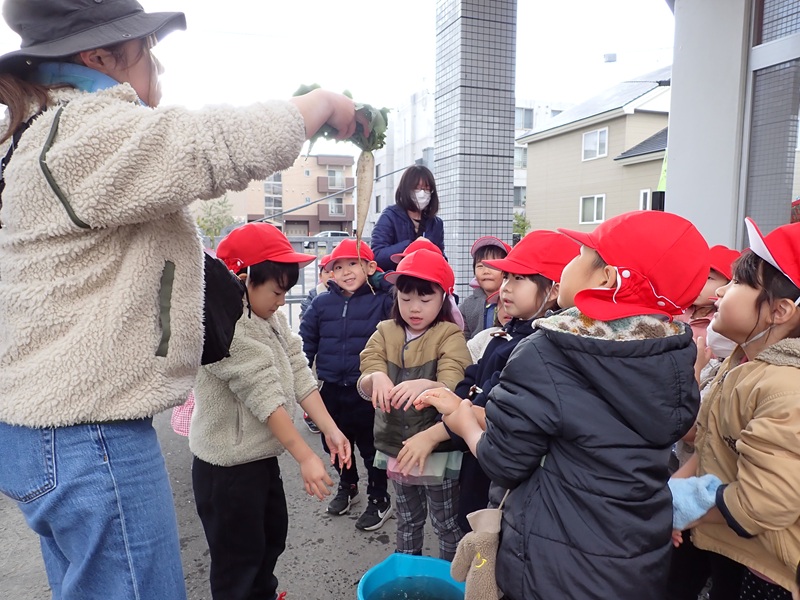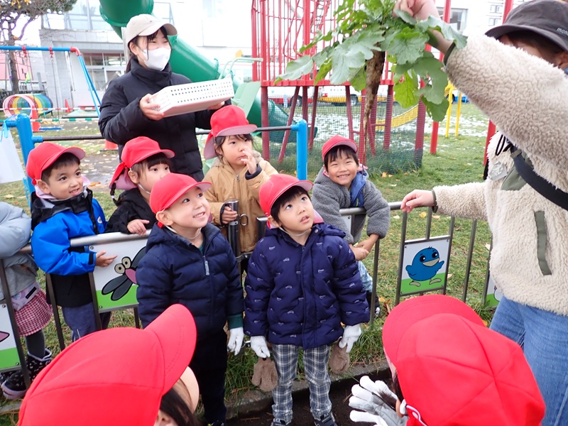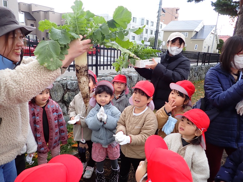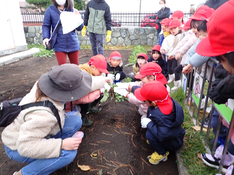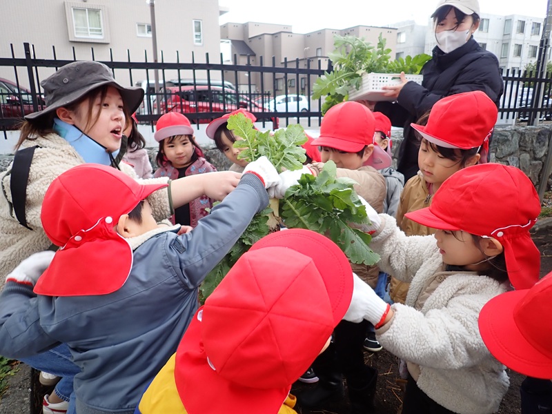 植える→お世話をする→収穫する→絵を描いたり、摺ったりして興味を拡大する→いただく、の続きがありました。