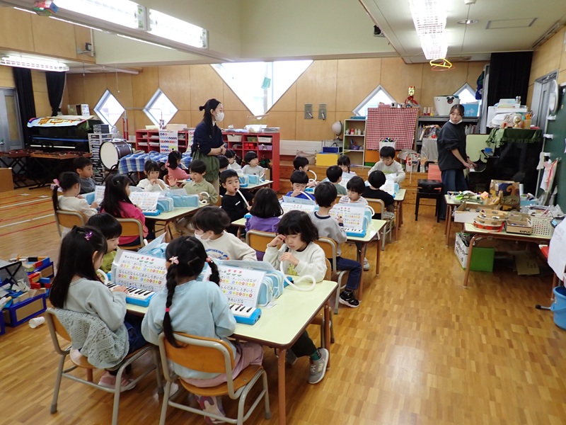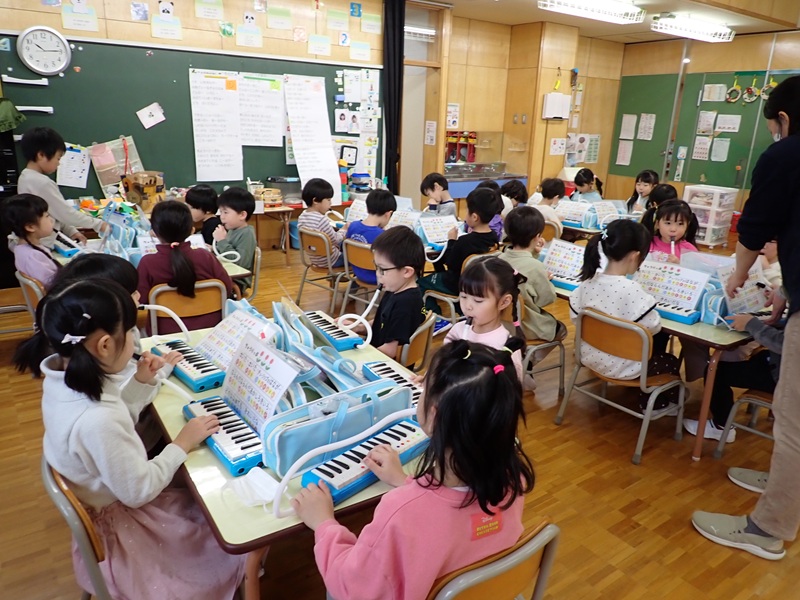 5.ゆり組さんは教室でピアニーの練習をしていました。