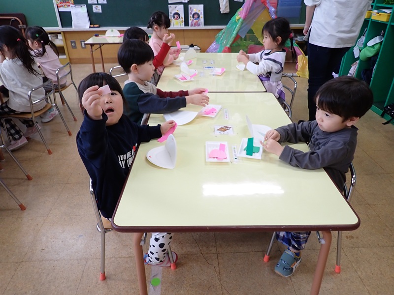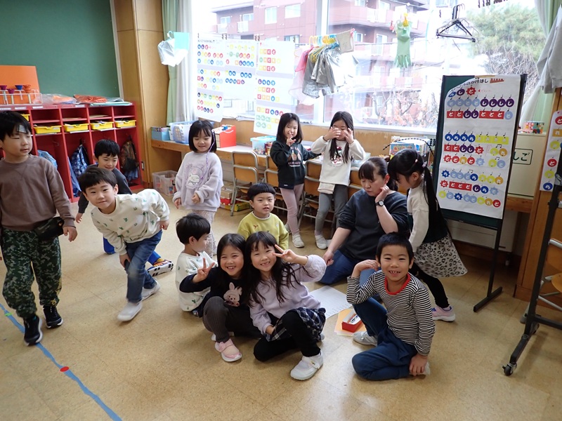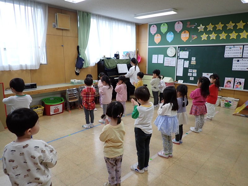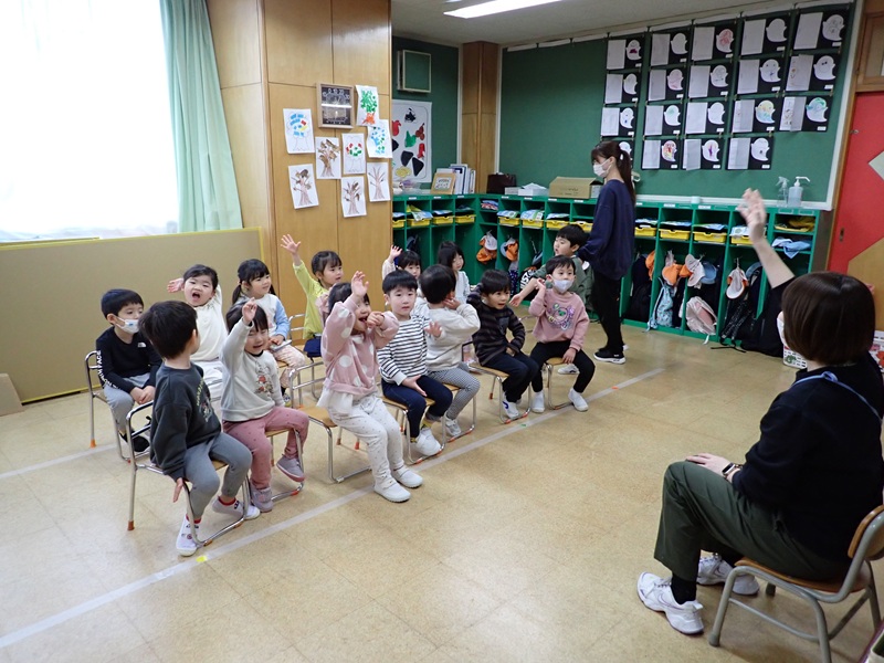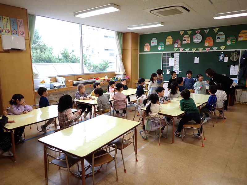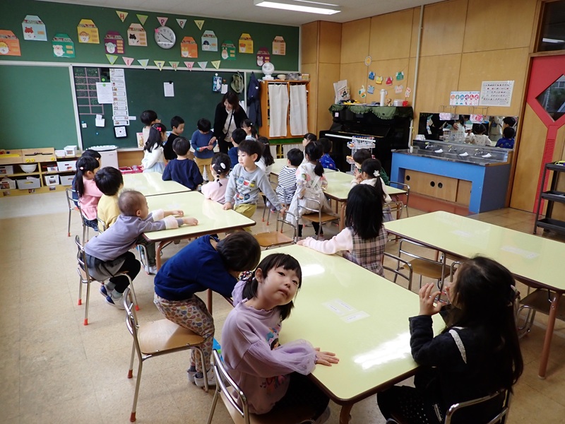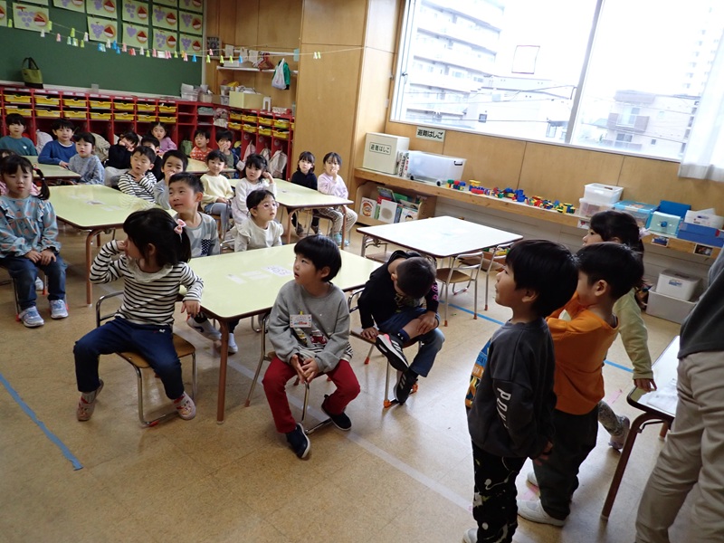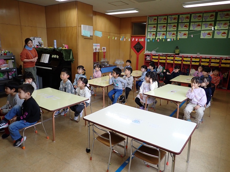 4.あじさい組さんの教室での様子です。教室組とホール組に分かれて活動していました。
