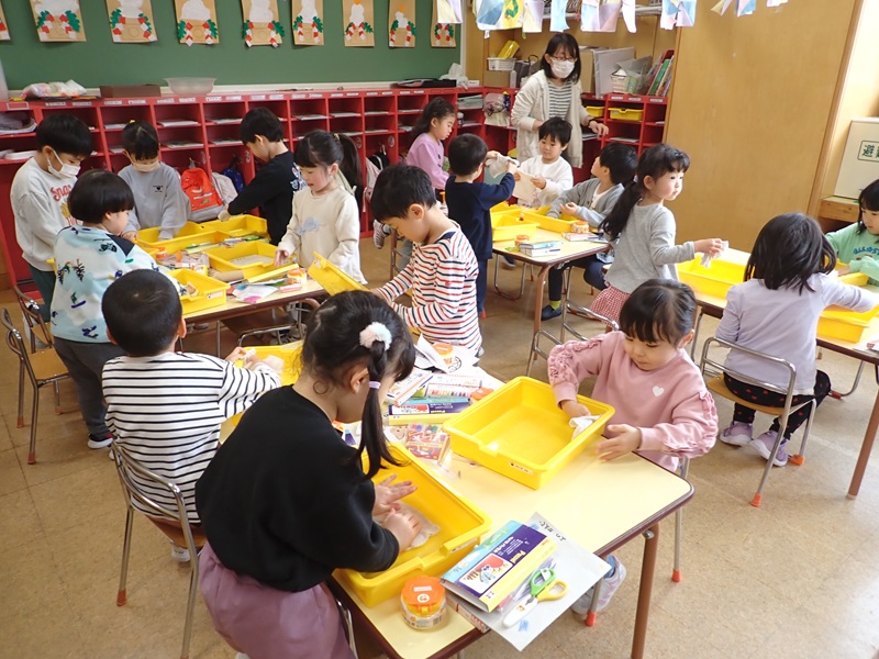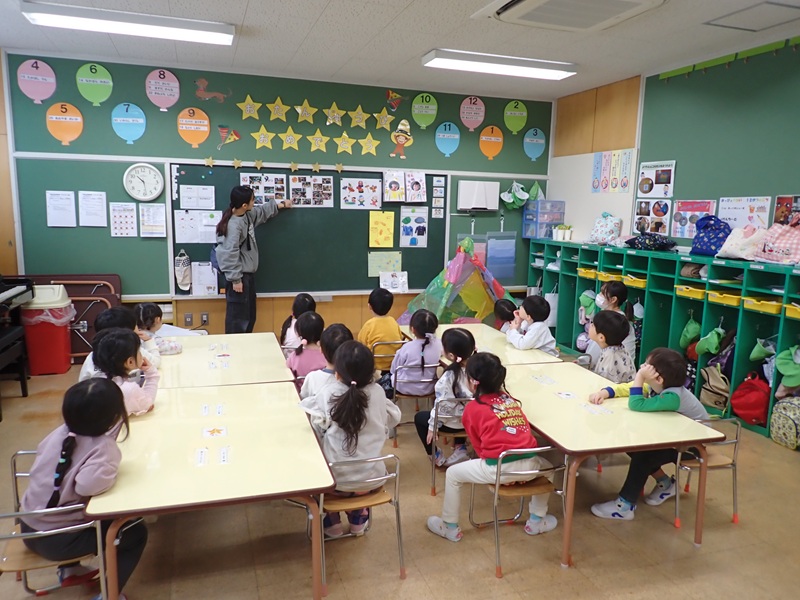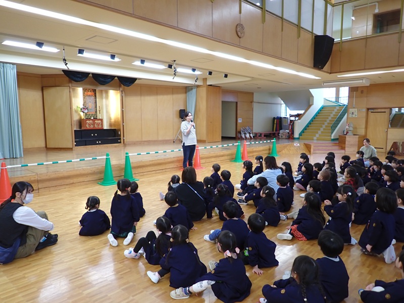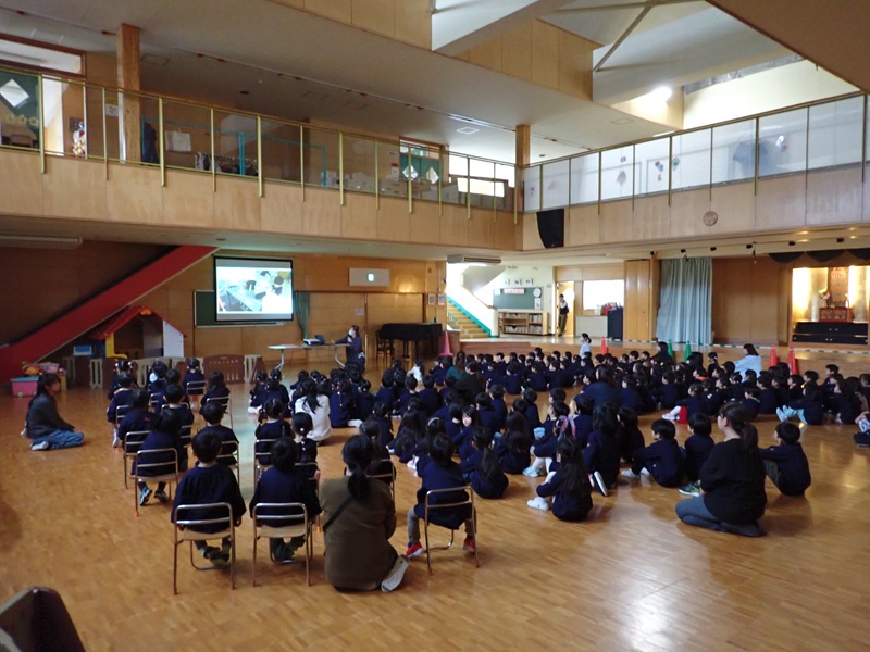 12/11(木)に、明園小学校の5年生が附属大谷幼稚園を訪問してくれて、交流会があったことを報告しておりましたが、今日は年長組さんが明園小学校を訪問させていただきました。