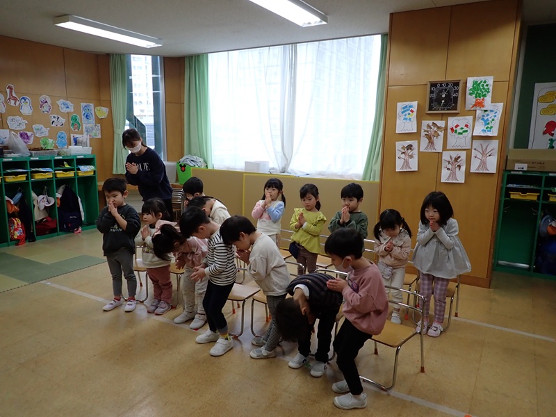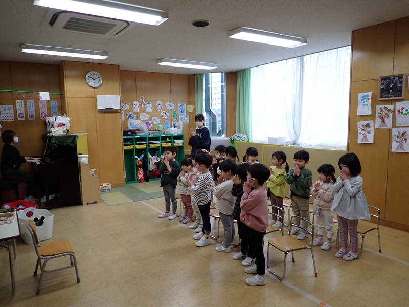 3.ひさびさに登園したあんず組さんの朝の会です。