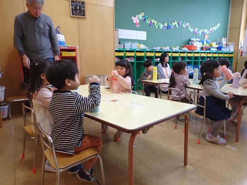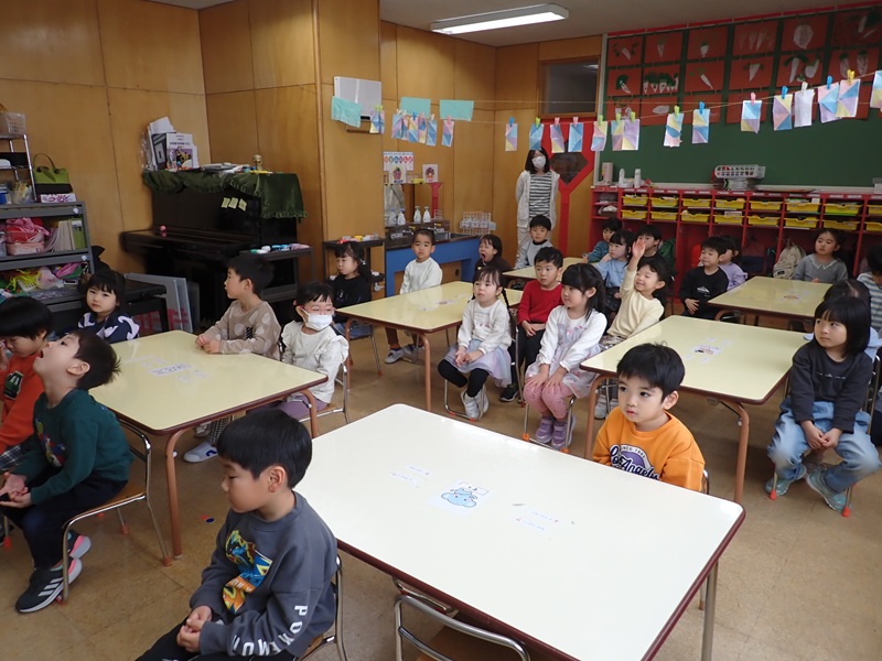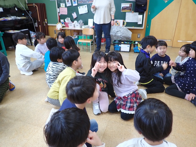 また、写真はありませんが、明園小学校の5年生が園を訪問してくれました。そして、年長組さんとの交流会がありました。