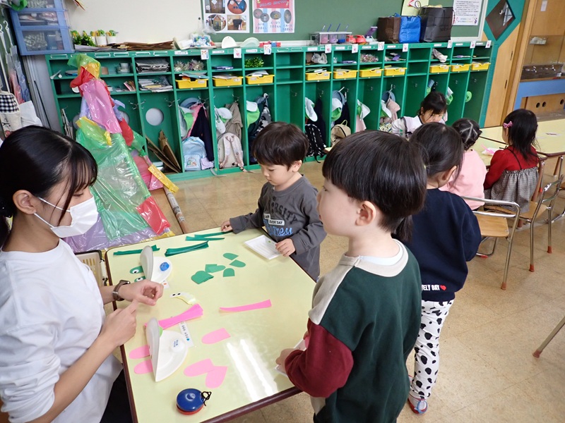 7.あじさい組さんは、実習の先生がお話をしてくれていたようです。