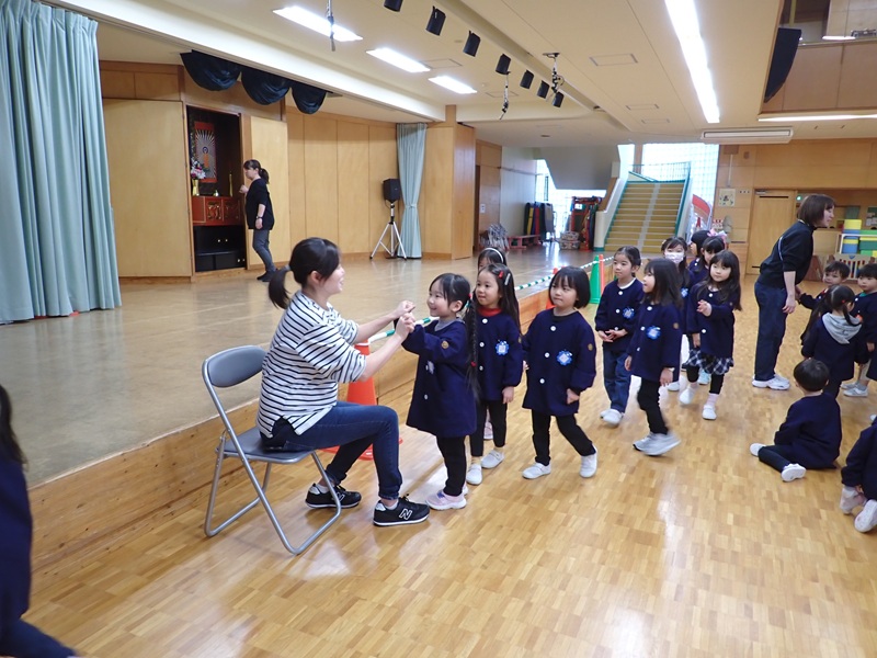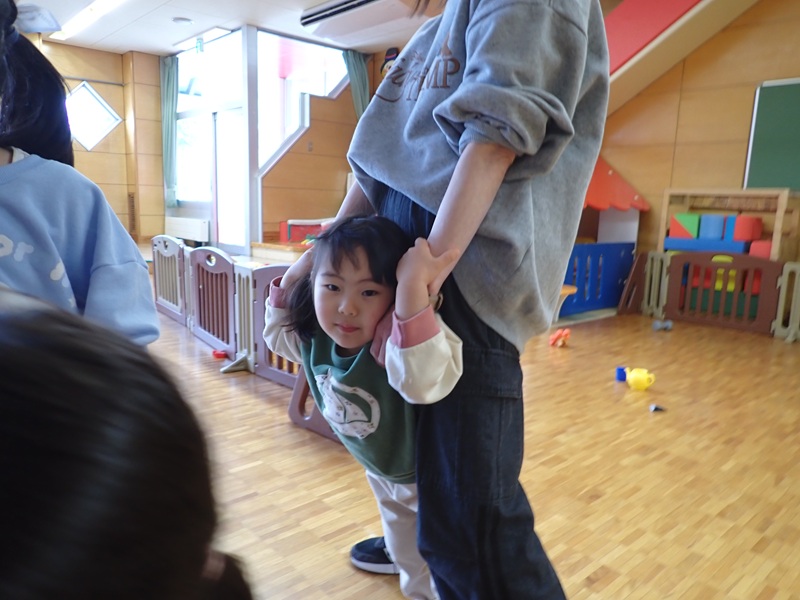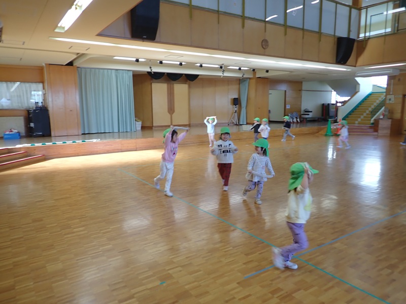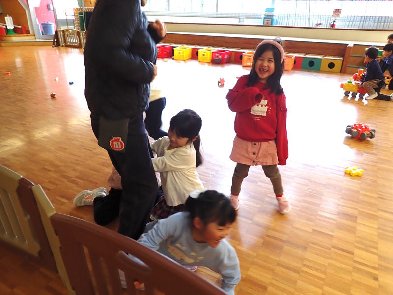 だるまさんが転んだ、手つなぎ鬼をやりました。みんな満面の笑顔で、おもいっきり楽しんでいました。