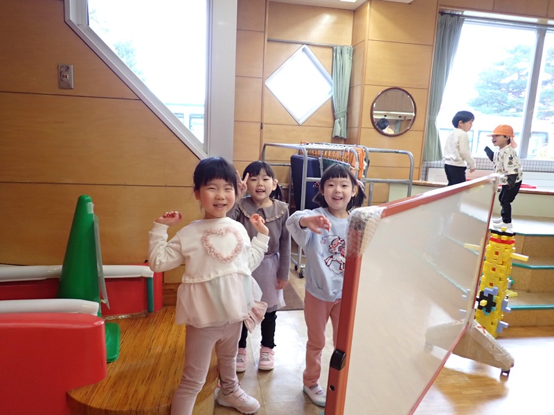 本日も、各クラスの朝の様子をお伝えします。1.もも組さんは教室でいろんな遊びをしていました。