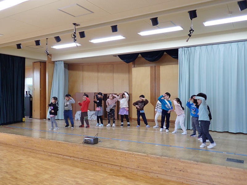 本日は、午前中の各クラスの活動をお知らせいたします。1.ゆり組さんがステージで発表会の練習をしていました。